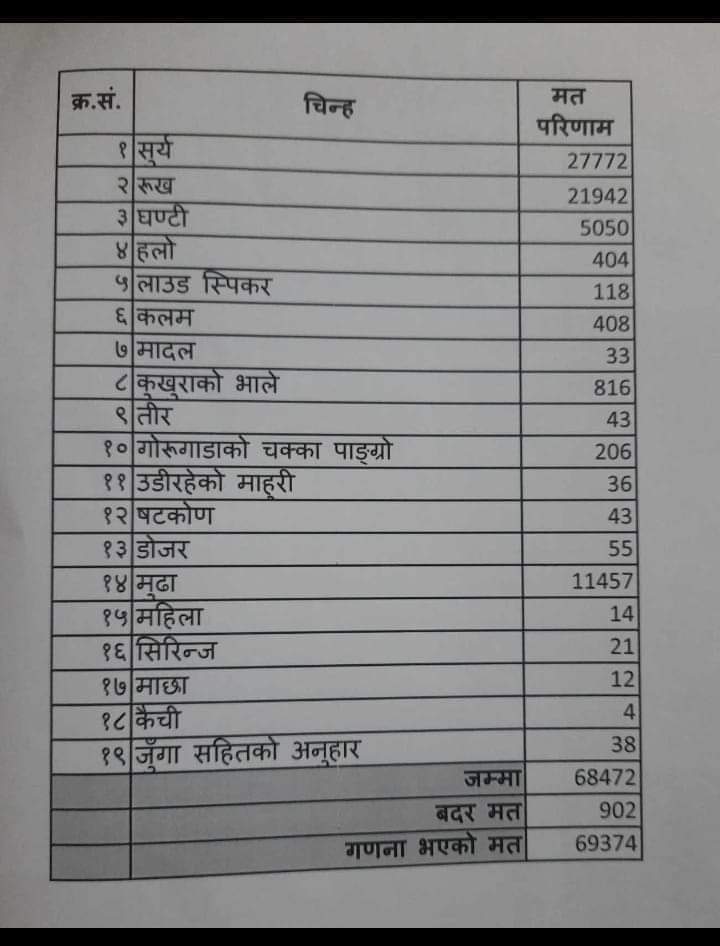 तेस्रोमा पहिचानवादी स्वतन्त्र उम्मेदवार डकेन्द्रसिंह थेगिमले ११ हजार ४५७ मत पाएका थिए ।