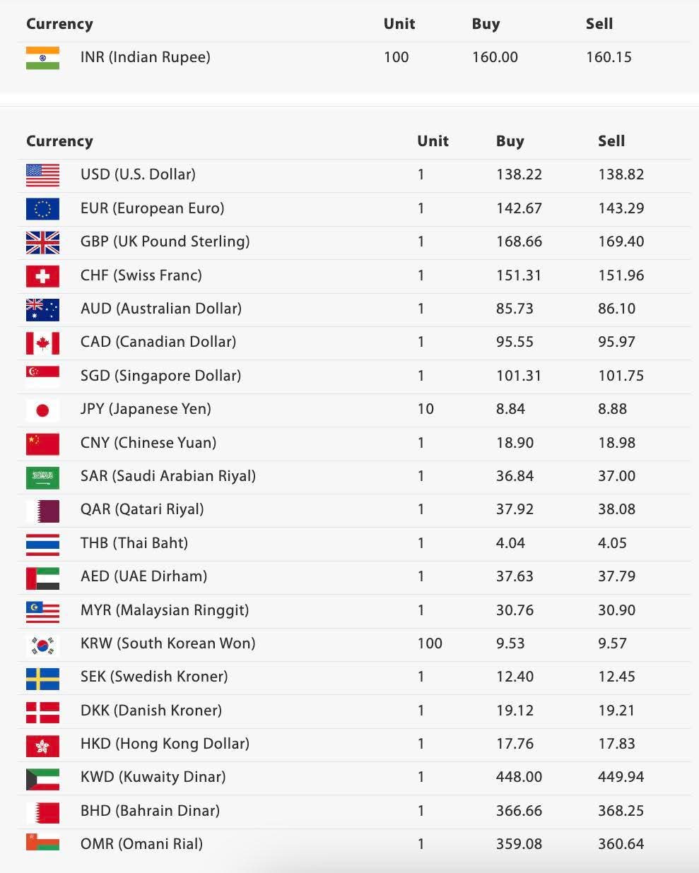 प्रहार समाचार । तनहुँ , ८ माघ २०८१ मङ्गलवार । नेपाल राष्ट्र बैङ्कले आजको लागि विदेशी मुद्राको विनिमय दर यस प्रकार तोकेको छ :