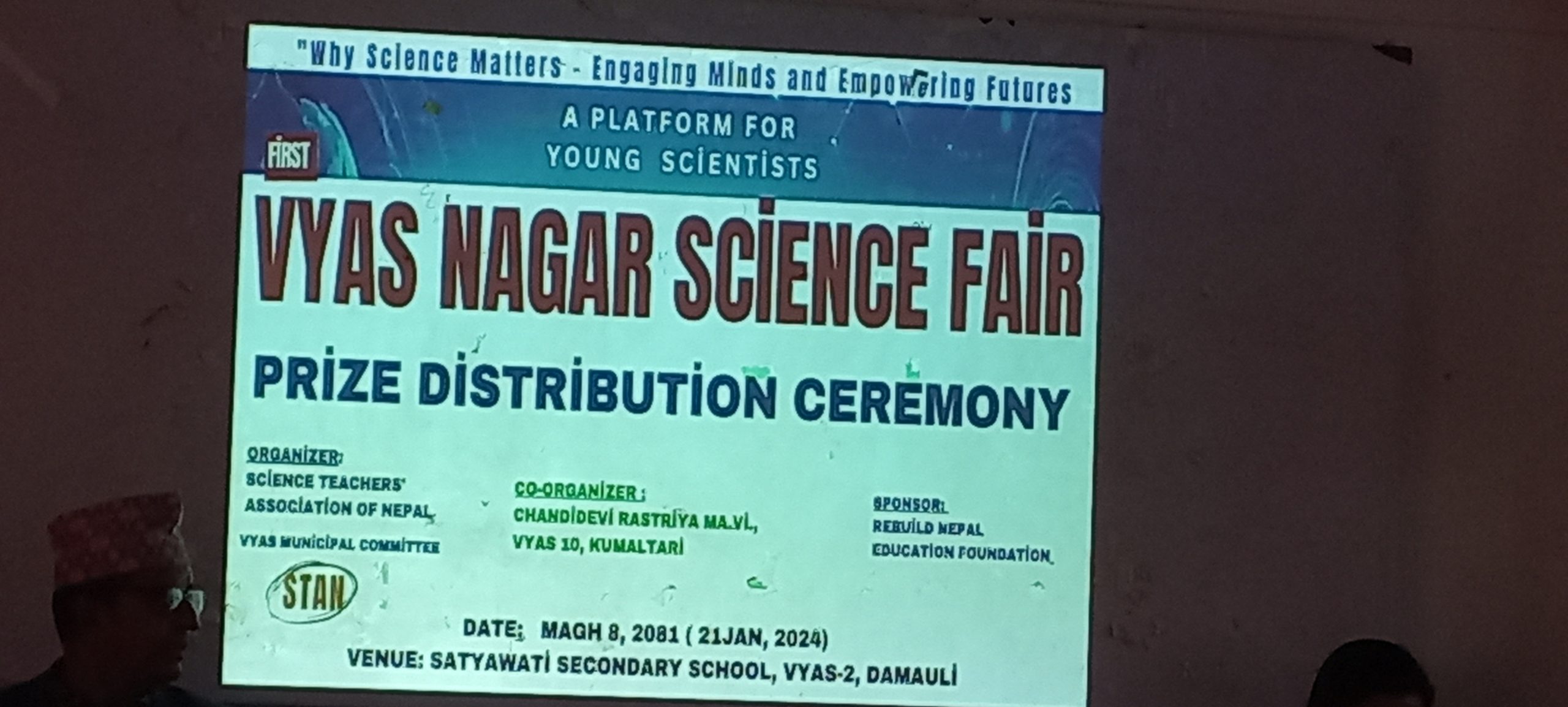 प्रतियोगितामा विजयी छात्र छात्राहरु तथा सम्बन्धित विद्यालयका विज्ञान शिक्षकहरुलाई नेपाल शिक्षक महासंघ तनहुँका अध्यक्ष रामचन्द्र पोख्रेल (आर सी), सत्यवती मा वि का प्रअ पुष्पकला भट्टराई, विज्ञान शिक्षक समाज व्यास नगर कार्य समितिका अध्यक्ष सुनिल पौडेलल लगायतले संयुक्त रूपमा पुरस्कार बितरण गरेका थिए ।