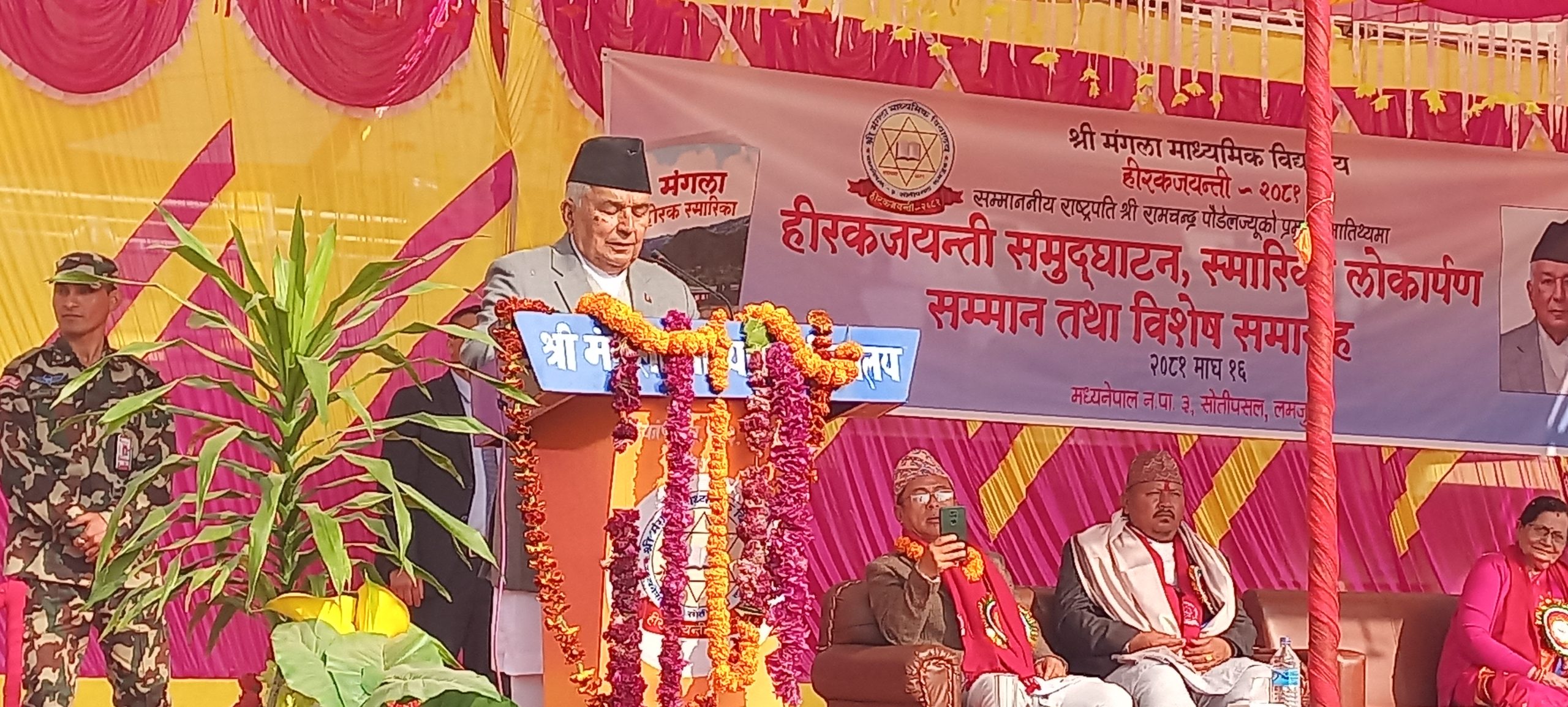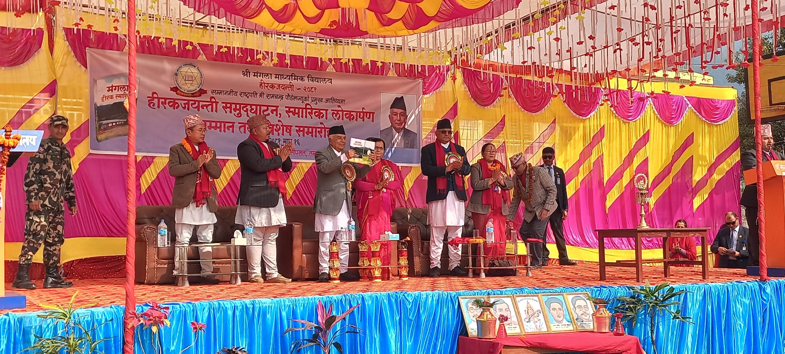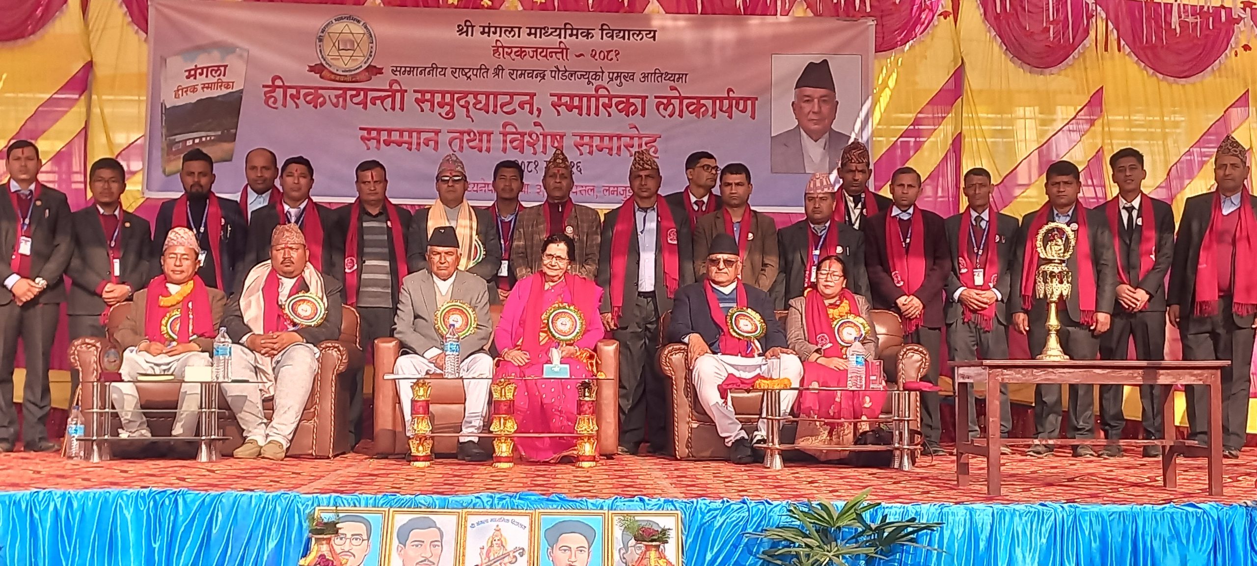 त्यस अवसरमा राष्ट्रपति पौडेलले विद्यालयको हिरक स्तम्भ अनावरण, नवर्निर्मित क्याल्टिन तथा अडिटोरियल हलको उद्घाटन तथा हीरक स्मारिका लोकार्पण गरेका थिए ।