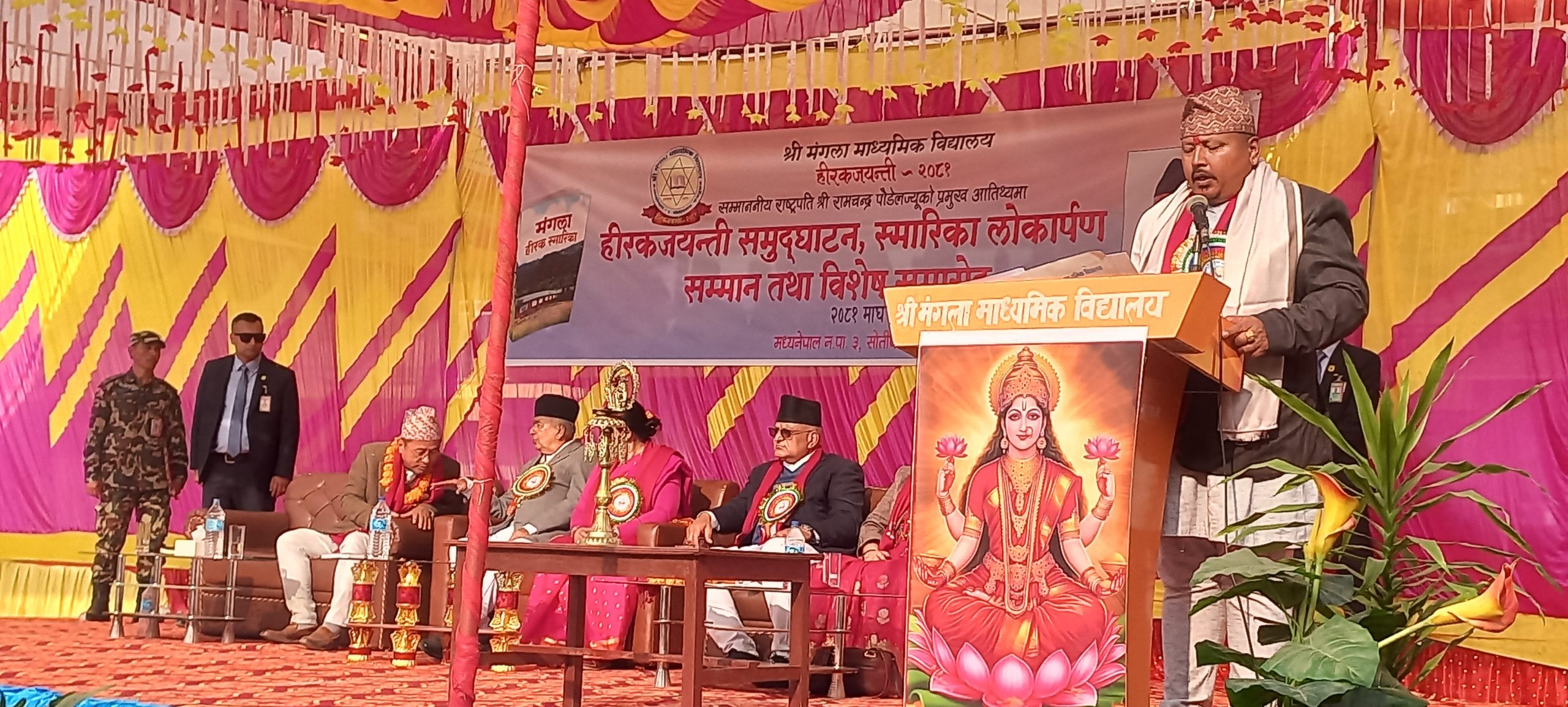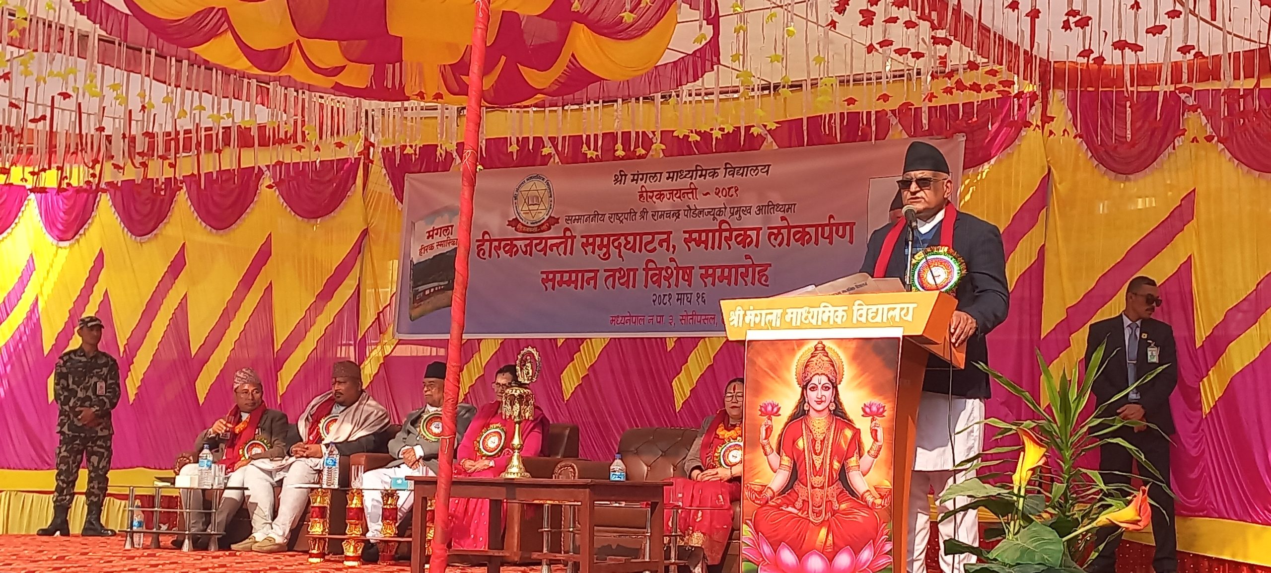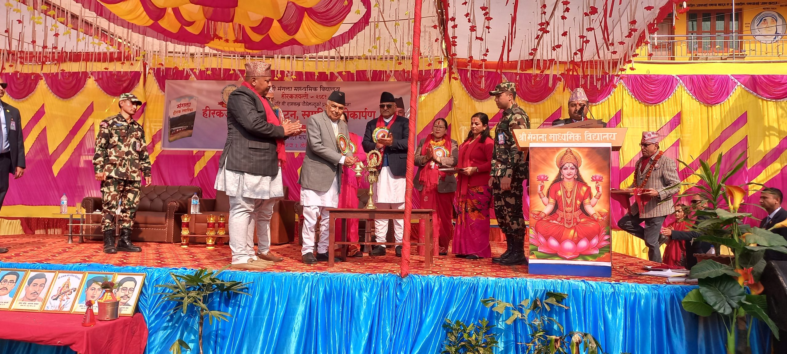 त्यस अवसरमा राष्ट्रपति पौडेलले विद्यालयको हिरक स्तम्भ अनावरण, नवर्निर्मित क्याल्टिन तथा अडिटोरियल हलको उद्घाटन तथा हीरक स्मारिका लोकार्पण गरेका थिए ।