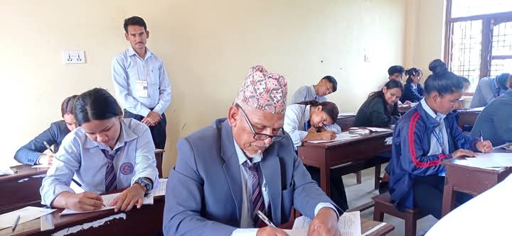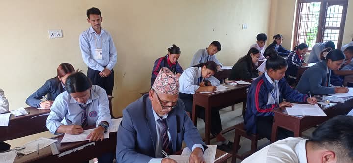 बि. क.यतिबेला कक्षा १२ को परीक्षा दिँदैछन् ।