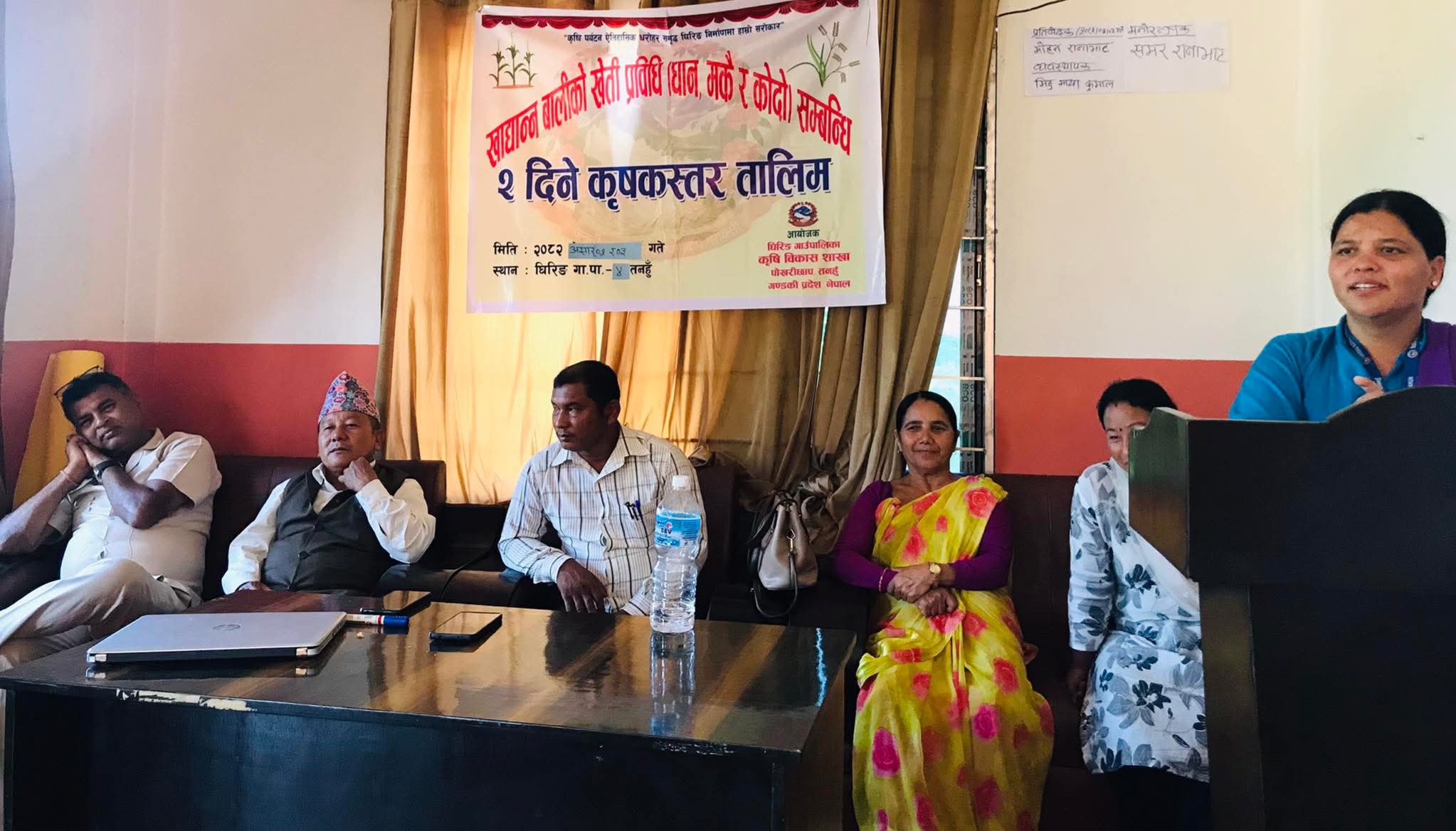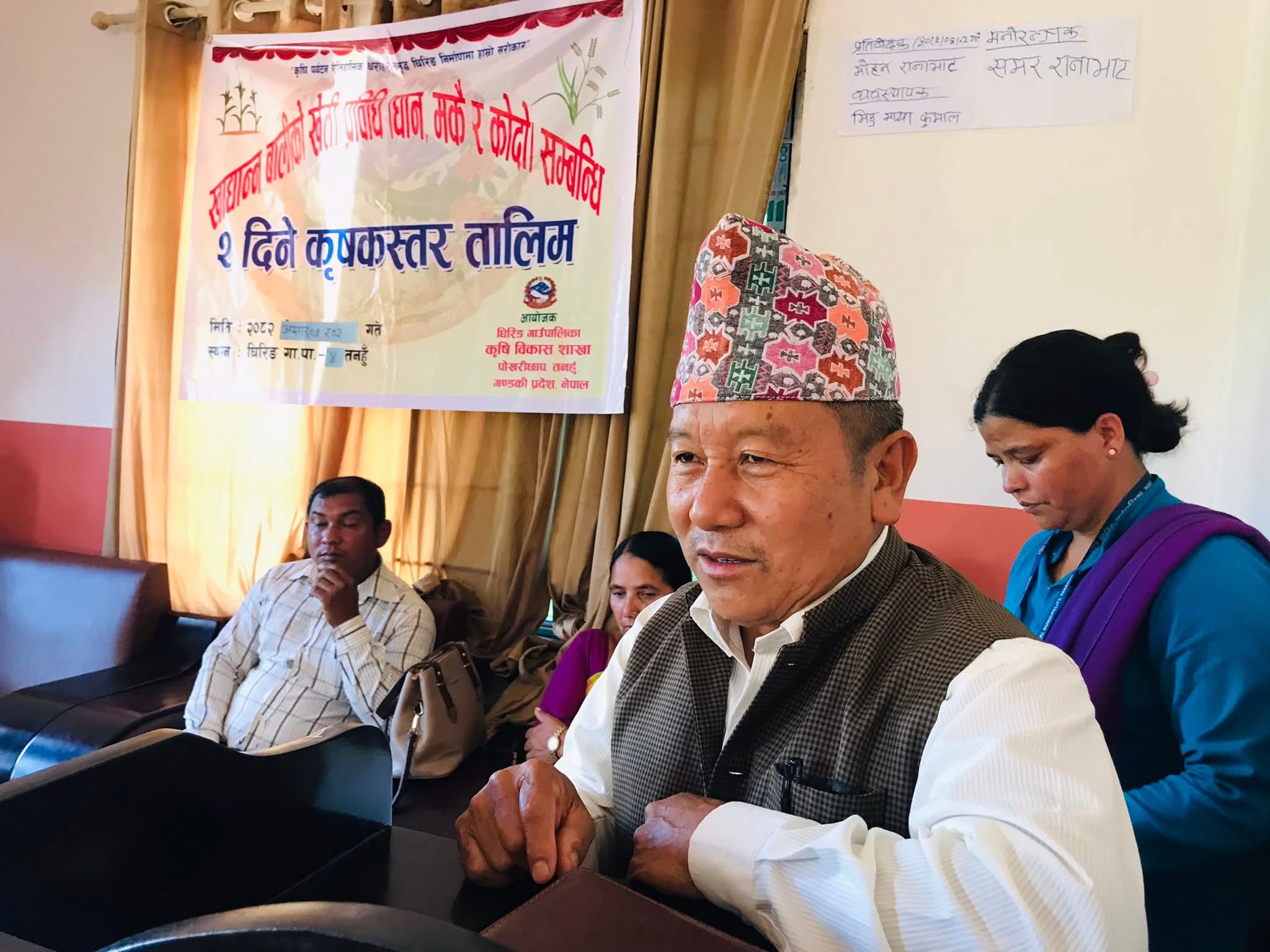 कार्यक्रममा उपाध्यक्ष राधादेवी अधिकारी, वडा अध्यक्ष रविचन्द्र घोरासेनी, कार्यपालिका सदस्य सरिता विकलगायतको उपस्थिति रहेको थियो। तालिमको अध्यक्षता वडा नं. ४ का अध्यक्ष भीमबहादुर कुमालले गरेका थिए भने सञ्चालन कृषि शाखा नायब प्राविधिक सहायक सामना नेपालीले गरेकी थिइन्।