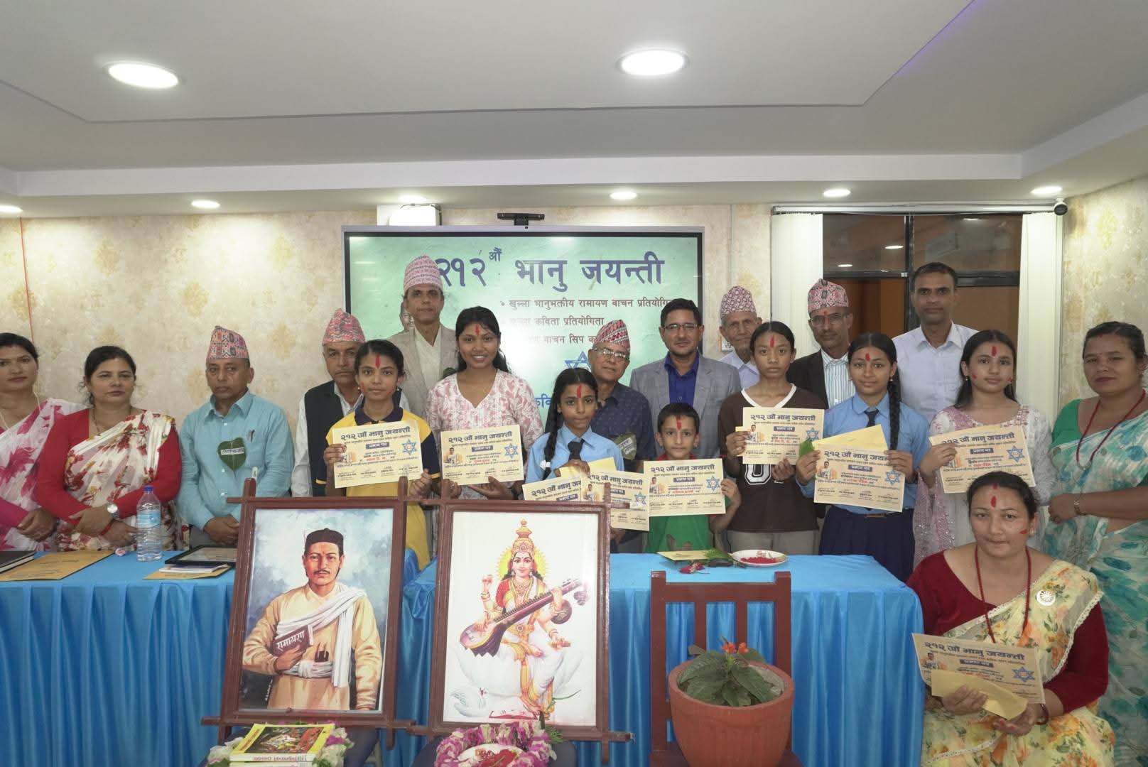 भानुभक्तीय रचना वाचन प्रतियोगितामा आदिकवि भानुभक्त क्याम्पसकी पुनम सुनार प्रथम, सत्यवती माविकी सगुन पौडेल द्वितीय र आदिकवि भानुभक्त मा वि की अर्पना तिवारी तृतीय भए। चण्डिदेवी राष्ट्रिय मा वि की आराध्य पौडेल र सुरक्षा तिमिल्सेना तथा बाराही मा वि का अभियान काफ्लेले सान्त्वना पुरस्कार प्राप्त गरे। त्यस्तै खुला कविता प्रतियोगितामा सत्यवती मा वि की ममता बि. क. प्रथम, लक्ष्मी लोहनी द्वितीय, महिना व बि. क. तृतीय तथा सुस्मिता बयालकोटी र सुरक्षा तिमिल्सेना सान्त्वना पुरस्कार भए।