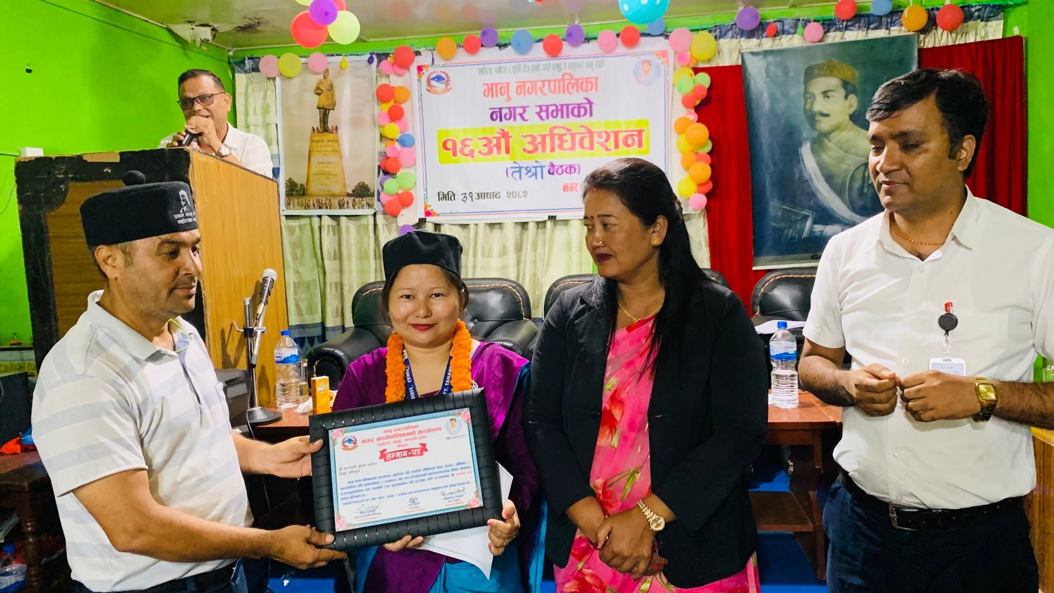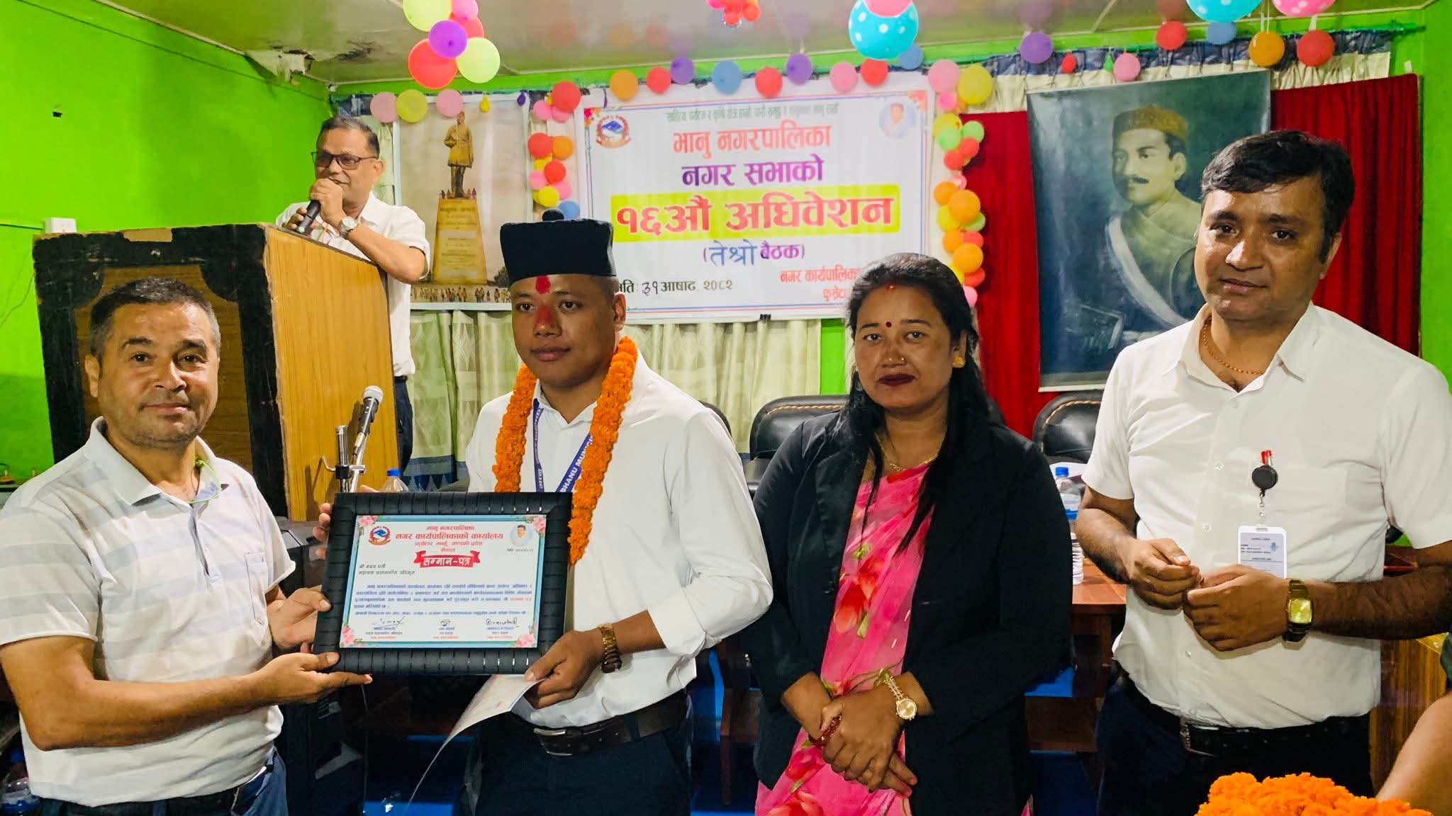 नगर सुशासन प्रवर्द्धनका लागि भानु नगरपालिका सुशासन समितिबाट उत्कृष्ट कर्मचारीहरूको छनोट गरी सम्मान गरिएको छ।