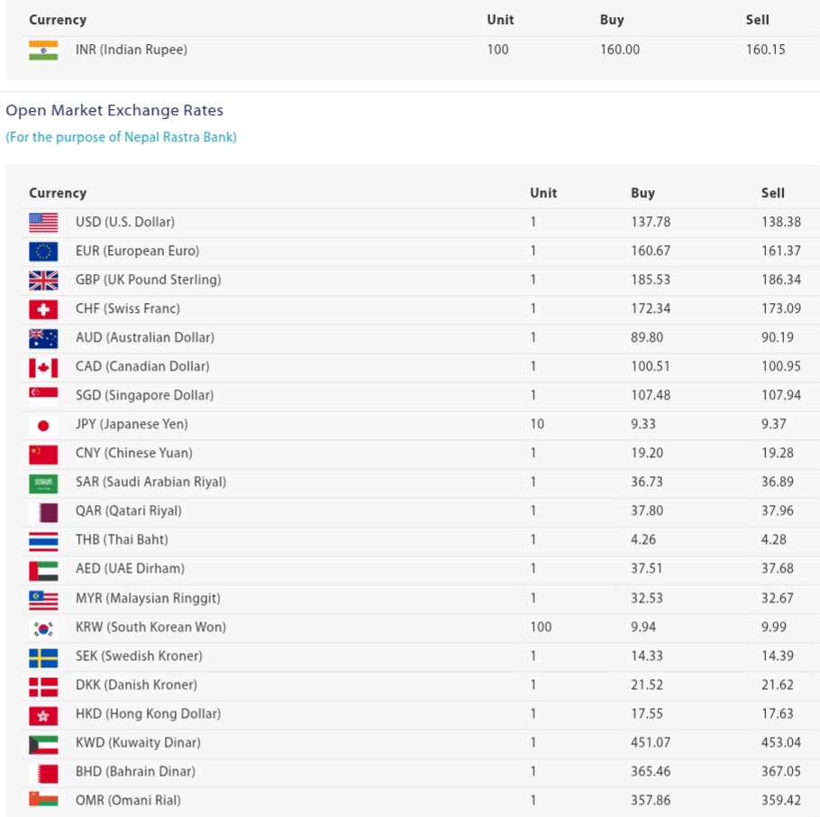 नेपाल राष्ट्र बैंकले दैनिक रूपमा विदेशी विनिमय दर सार्वजनिक गर्ने गर्दछ, जसले आयात–निर्यात व्यवसाय, विदेशी लगानी, र अन्तर्राष्ट्रिय कारोबारमा संलग्न व्यवसायीहरूलाई मार्गदर्शन गर्ने कार्य गर्दछ। विनिमय दरमा आउने उतार–चढावले आर्थिक कारोबारमा प्रत्यक्ष असर पार्ने भएकाले बैंकले नियमित रूपमै सो दरको जानकारी अद्यावधिक गराउँदै आएको छ ।