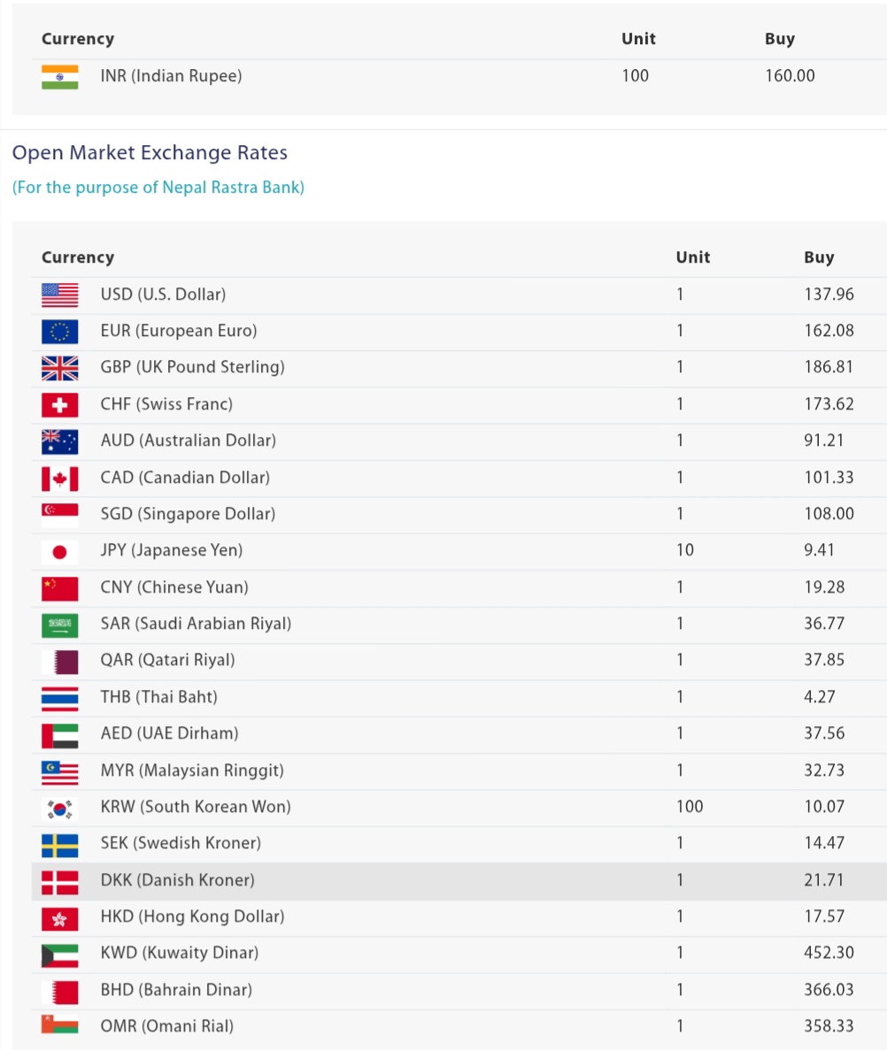 नेपाल राष्ट्र बैंकले दैनिक रूपमा विदेशी विनिमय दर सार्वजनिक गर्ने गर्दछ, जसले आयात–निर्यात व्यवसाय, विदेशी लगानी, र अन्तर्राष्ट्रिय कारोबारमा संलग्न व्यवसायीहरूलाई मार्गदर्शन गर्ने कार्य गर्दछ। विनिमय दरमा आउने उतार–चढावले आर्थिक कारोबारमा प्रत्यक्ष असर पार्ने भएकाले बैंकले नियमित रूपमै सो दरको जानकारी अद्यावधिक गराउँदै आएको छ ।