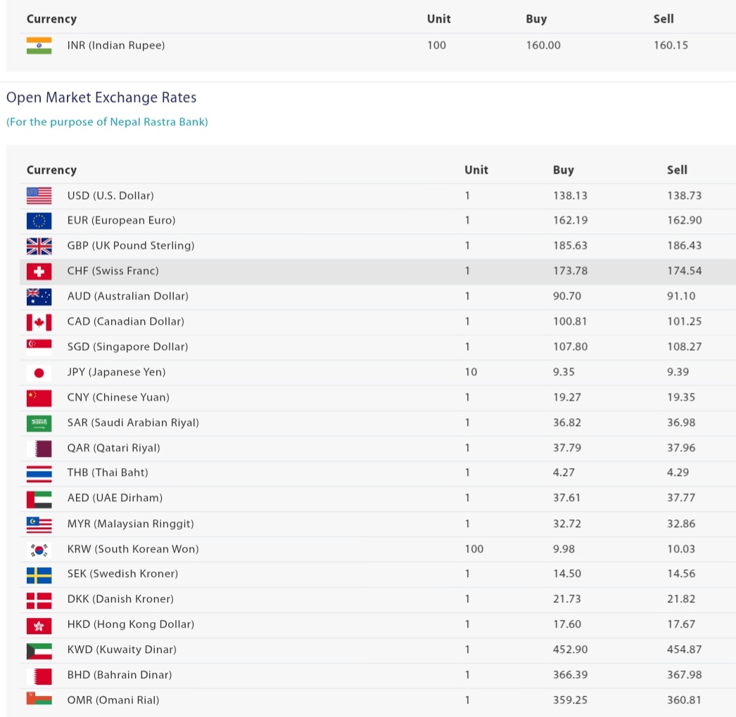 नेपाल राष्ट्र बैंकले दैनिक रूपमा विदेशी विनिमय दर सार्वजनिक गर्ने गर्दछ, जसले आयात–निर्यात व्यवसाय, विदेशी लगानी, र अन्तर्राष्ट्रिय कारोबारमा संलग्न व्यवसायीहरूलाई मार्गदर्शन गर्ने कार्य गर्दछ। विनिमय दरमा आउने उतार–चढावले आर्थिक कारोबारमा प्रत्यक्ष असर पार्ने भएकाले बैंकले नियमित रूपमै सो दरको जानकारी अद्यावधिक गराउँदै आएको छ।