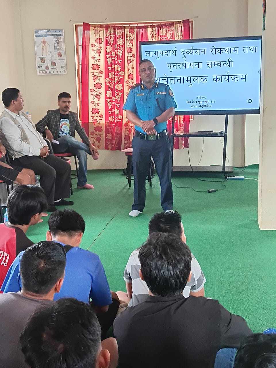 कार्यक्रमका वक्ता लागूपदार्थ पुनःस्थापना तथा पदामर्शदाता दुर्गा बहादुर थापाले दुर्ब्यसन र अपराधबीचको सीधा सम्बन्ध रहेको चर्चा गर्दै आबुखैरेनीमा पक्राउ परेका चोरीका घटनामा संलग्न अधिकांशको पृष्ठभूमि हेर्दा लागुपदार्थ सेवनकै लागि चोरीमा संलग्न रहेको बाइएको बताए। उनले समाजमा लुकाउने प्रवृत्तिको कारण समस्या गम्भीर हुँदै गएको बताए ।