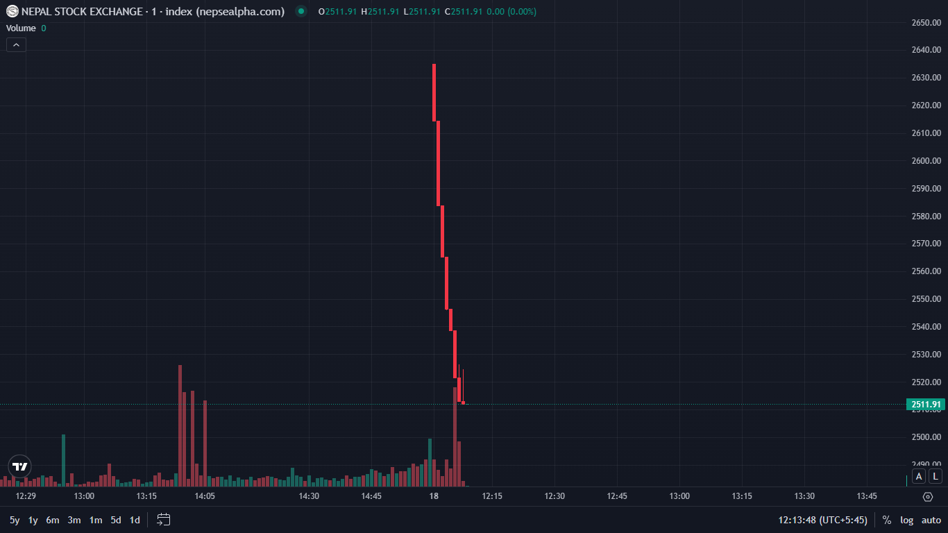 सत्ता परिवर्तनपछि खुलेको पहिलो कारोबार दिन, नियमित बजार सुरु भएको २ मिनेटमै नेप्से ४ प्रतिशतले घट्दा पहिलो नकारात्मक सर्किट ब्रेक लागेर कारोबार २० मिनेटका लागि स्थगित भएको थियो। पुनः ११ बजेर २२ मिनेटमा खुलेको बजार १ मिनेटमै थप १ प्रतिशतले घट्दा दोस्रो सर्किट ब्रेक लागेर कारोबार ४० मिनेटका लागि रोकिएको थियो।