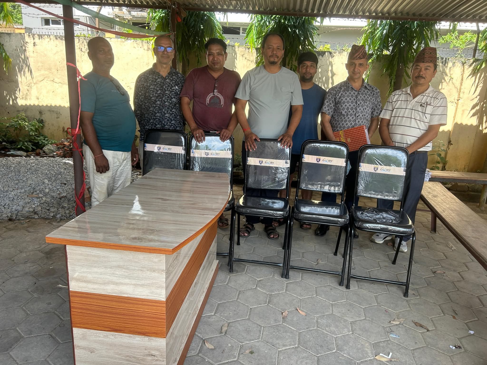 कार्यालय सञ्चालनमा सहजता ल्याउने उद्देश्यले यसोसिएशनले तनहुँले जिन्सी सामग्री अन्तर्गत ५ थान कुर्सी हस्तान्तरण गरेको हो। यसोसियशनका अध्यक्ष आलोक कुमाल, पूर्व अध्यक्ष बलभद्र श्रेष्णलगायतको टोलीले जिल्ला प्रशासन कार्यालय तनहुँका जिन्सी शाखा प्रमुख गोपाल पोखरेलमार्फत सो सहयोग आज हस्तान्तरण गरेका हुन्।