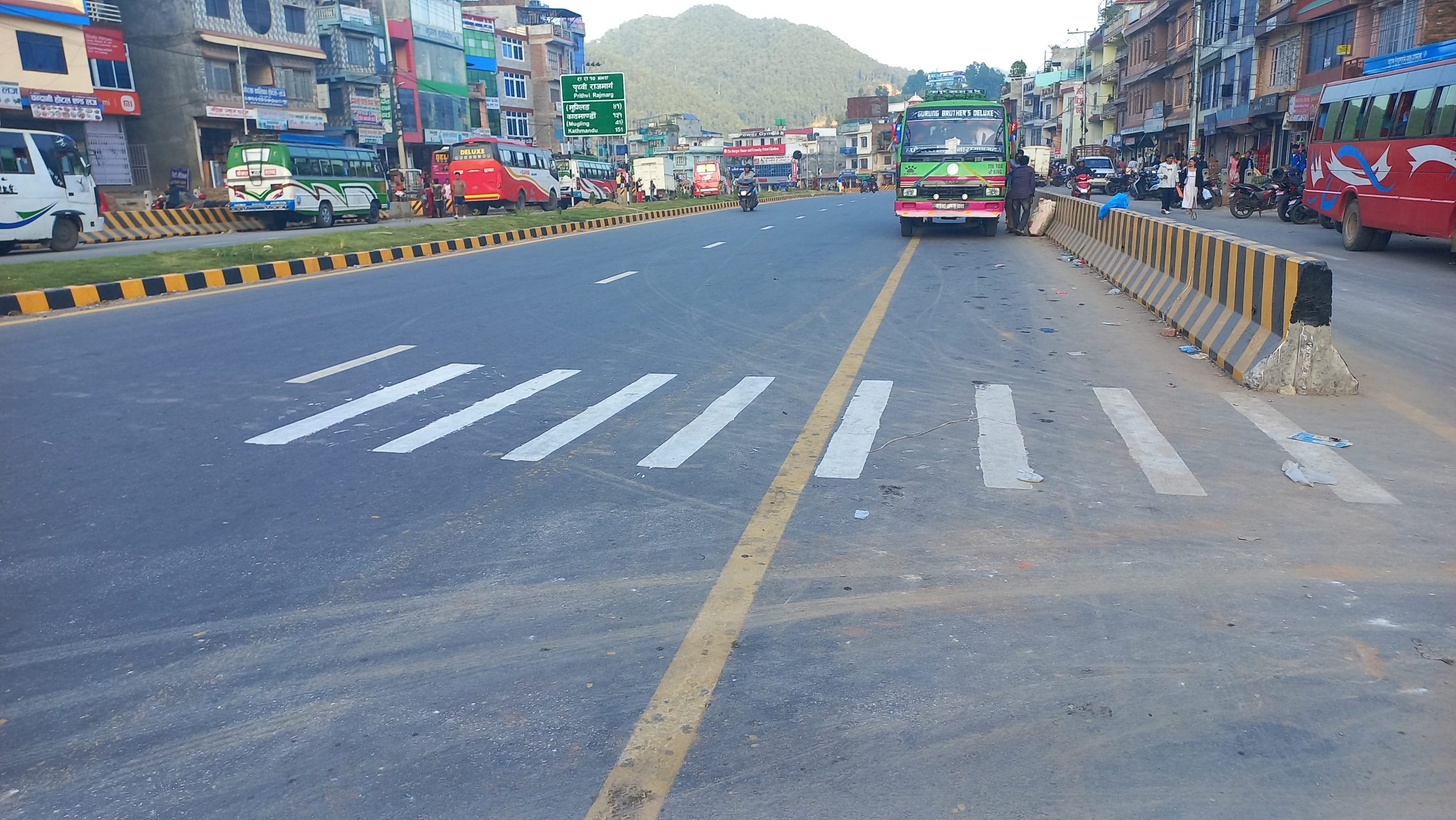प्रहार समाचार । तनहुँ, ३० असोज २०८२ बिहीवार । सडक बन्यो, डिभाइडर पनि राखियो—तर व्यापारीलाई भने त्यो मन परेन। मुग्लिन–पोखरा सडक विस्तार आयोजना अन्तर्गत तनहुँको दमौली बजार खण्डमा निर्माण कार्य अन्तिम चरणमा पुगेसङ्सगै सडक डिभाइडर र रंगरोगनको अन्तिम चरण चलिरहेको छ। तर, स्थानीय व्यापारीहरूले नियमको धज्जी उडाउँदै डिभाइडर हटाएर मनपरी जेब्रा क्रसिङ बनाउन थालेका छन्। तस्बिरहरु : प्रहार अनलाईन मिडिया