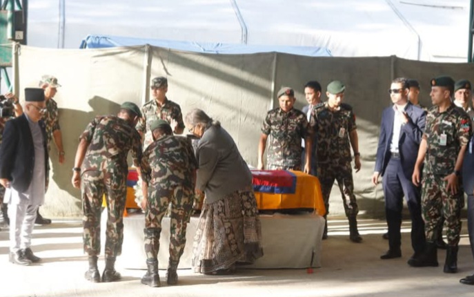 प्रहार समाचार । काठमाडौँ , ३ कात्तिक २०८२ सोमवार । हमासको हक्रमणपछि बन्धक बनाइएका कञ्चनपुरका विपिन जोशीको पार्थिव शरीर नेपाल ल्याइएको छ। २४ वर्षीय जोशीको शव आज अपरान्ह २:३५ बजे इजरायलबाट काठमाडौंस्थित त्रिभुवन अन्तर्राष्ट्रिय विमानस्थलमा पुर्याइएको हो।