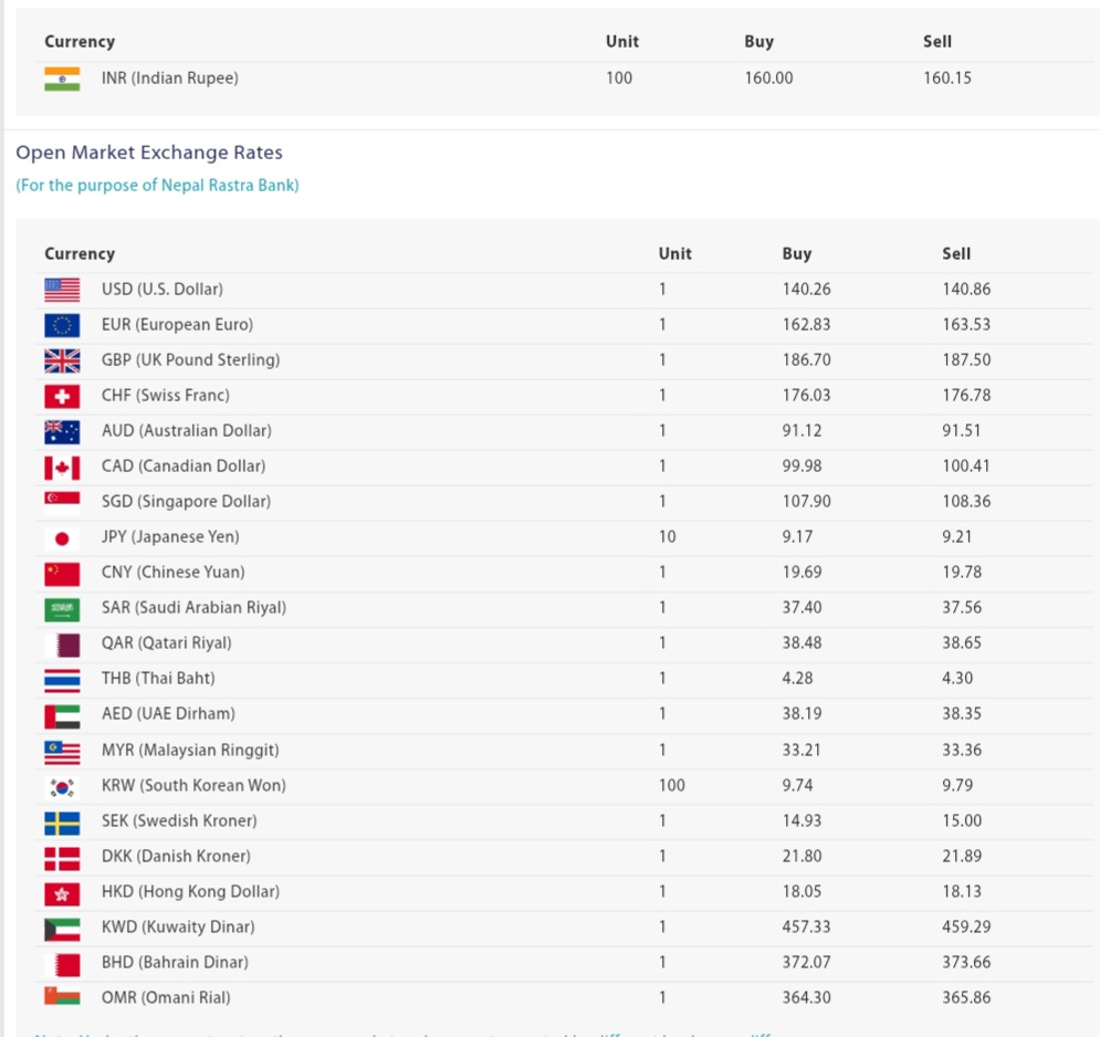 प्रहार समाचार । काठमाडौँ, ९ कात्तिक २०८२ आइतवार । नेपाल राष्ट्र बैंकले आजको लागि विदेशी मुद्राको विनिमय दर निर्धारण गरेको छ। जस अनुसार विनिमय दर यसप्रकार रहेको छ।