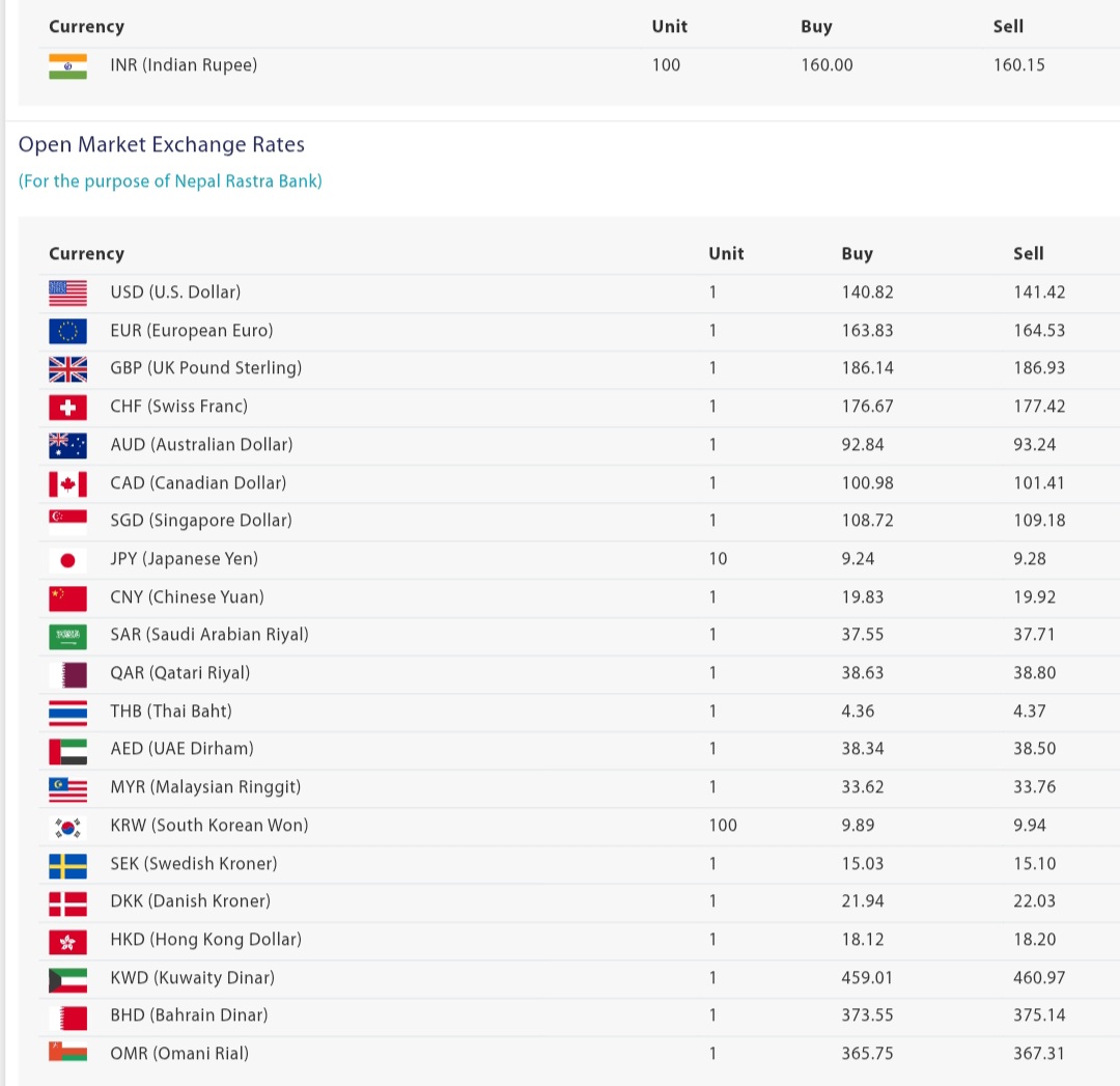 बिहीवार । नेपाल राष्ट्र बैंकले आजको लागि विदेशी मुद्राको विनिमय दर निर्धारण गरेको छ। जस अनुसार विनिमय दर यसप्रकार रहेको छ।