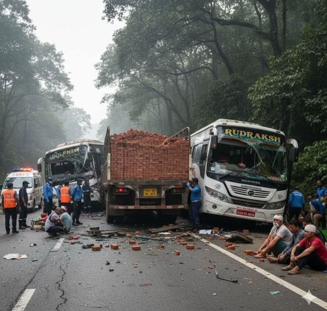 प्रहरीका अनुसार गएराति करिब पौने २ बजे इँटा लोड गरी सडक छेउमा पार्किङ गरी राखिएको ना ६ ख ८१३ नम्बरको ट्रकमा गौरबाट काठमाडौंतर्फ जाँदै गरेको बा.प्र. ०३०० ख ०१२३ नम्बरको डल्फिन यात्रुबाहक बस ठोक्किएको थियो। त्यसपछि सोही बसमा पछाडिबाट जनकपुरबाट काठमाडौं आउँदै गरेको बा.प्र. ०३०० ख ३९०२ नम्बरको रुद्राक्ष यात्रुबाहक बस पनि ठोक्किएको थियो। दुर्घटनामा बसका यात्रुहरु घाइते भएका हुन्।