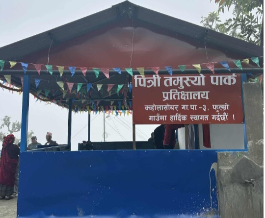 ४ लाख रुपैयाँको लागतमा निर्माण गरिएको उक्त प्रतिक्षालयका लागि स्थानीय धनमाया गुरुङले आफ्ना स्वर्गीय श्रीमान् पञ्चबहादुर गुरुङको नाममा ५ आना जग्गा दान गरेकी हुन्। यात्रुहरूलाई वर्षा र घाममा विश्राम लिन सहज होस् भन्ने उद्देश्यसहित प्रतिक्षालय निर्माण गरिएको रन बहादुर गुरुङले प्रहार समाचारलाई जानकारी दिए।