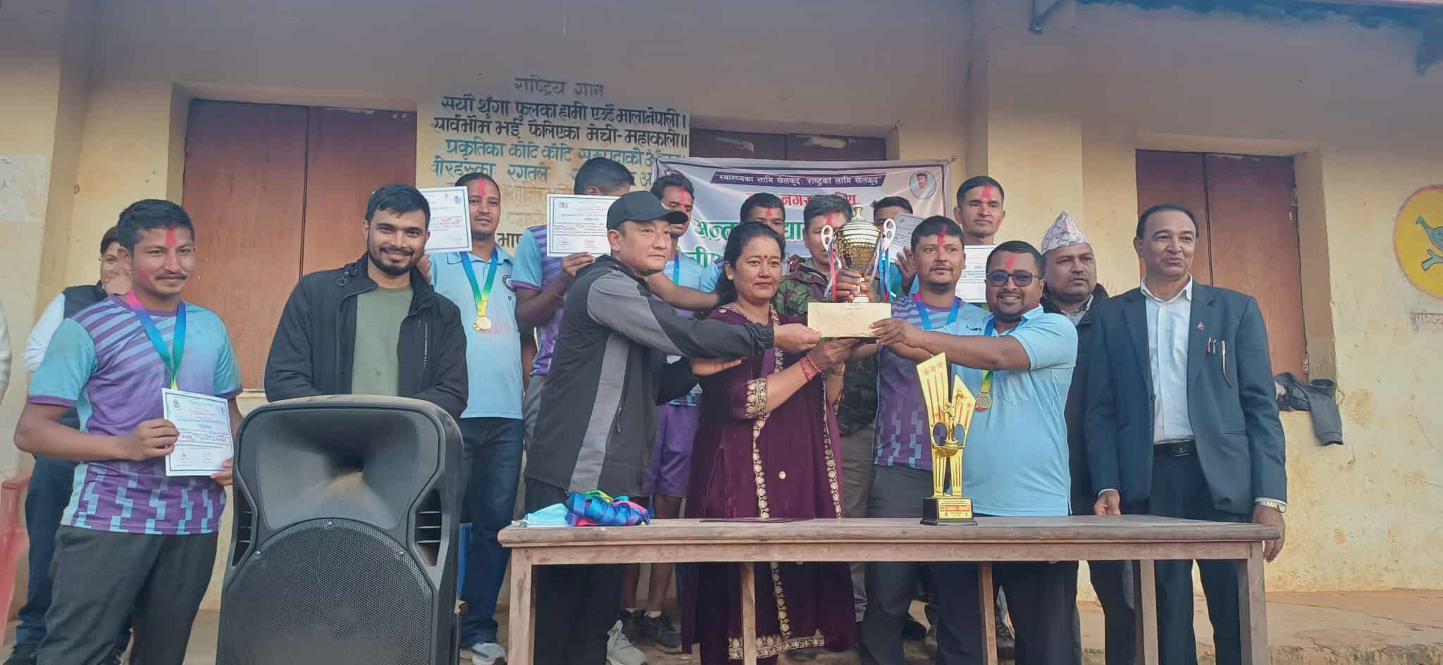 नगर खेलकुद विकास समितिका संयोजक तथा वडा नं. ३ का वडाध्यक्ष तुलकुमार गुरुङको सभापतित्वमा सम्पन्न पुरस्कार वितरण समारोहमा नगर उप–प्रमुख उमा गौतमले खेल क्षेत्र सशक्त बनाउन पालिकाले योजनाबद्ध रूपमा अघि बढिरहेको बताउँदै यस्ता प्रतियोगिताले विद्यार्थी तथा समुदायबीच संयम, अनुशासन र मैत्रीपूर्ण सम्बन्ध मजबुत बनाउने विश्वास व्यक्त गरिन् । ।र