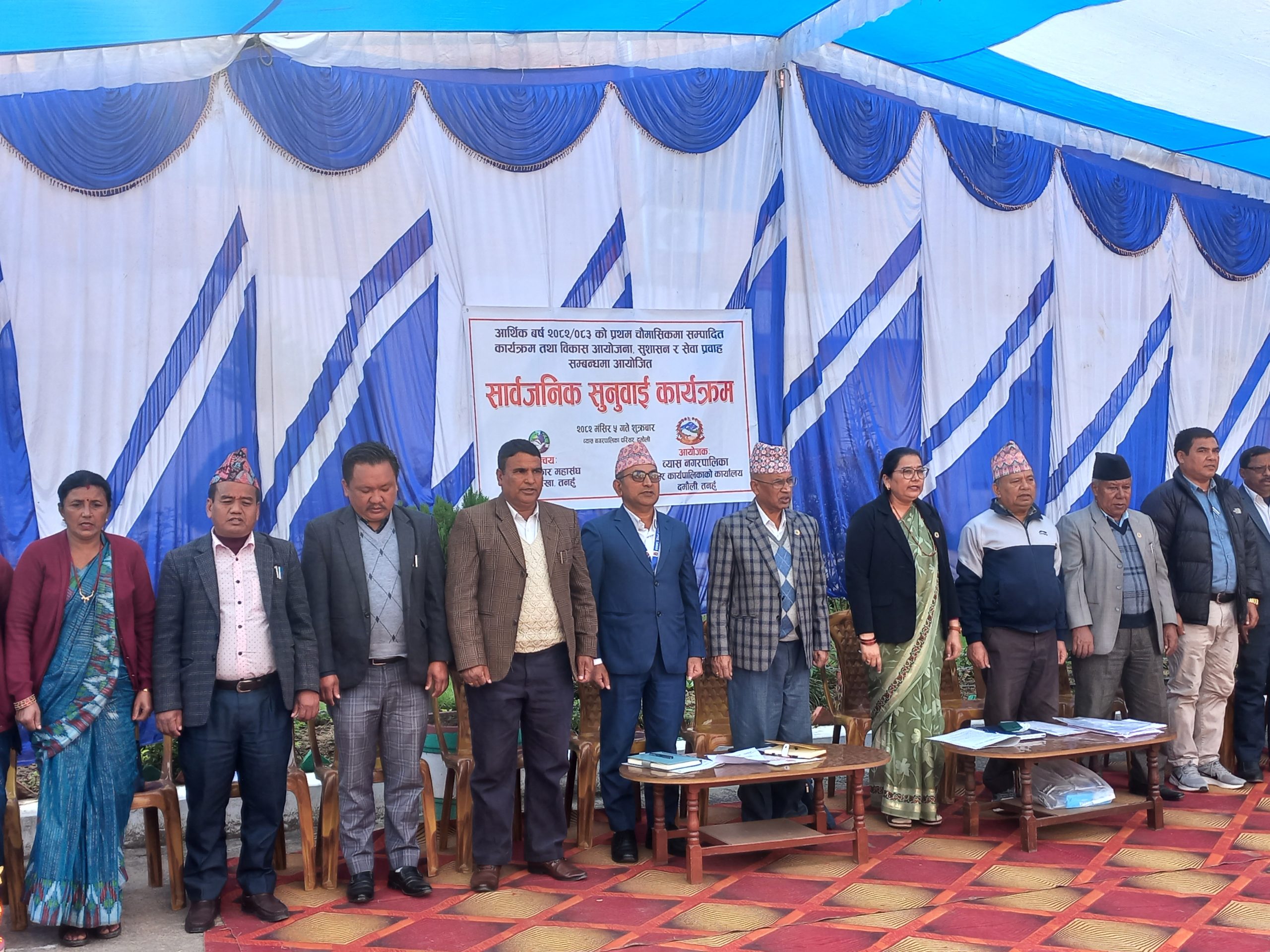 प्रहार समाचार । तनहुँ, ६ मंसिर २०८२ शनिवार । समृद्ध र पारदर्शी प्रशासनिक प्रणाली निर्माणका लागि व्यास नगरपालिकाले नगरवासीको सुझाव र सहकार्यलाई मूल आधार बनाउँदै प्रथम चौमासिक सार्वजनिक सुनुवाइ सम्पन्न गरेको छ। तस्बिरहरु : प्रहार अनलाईन मिडिया ।