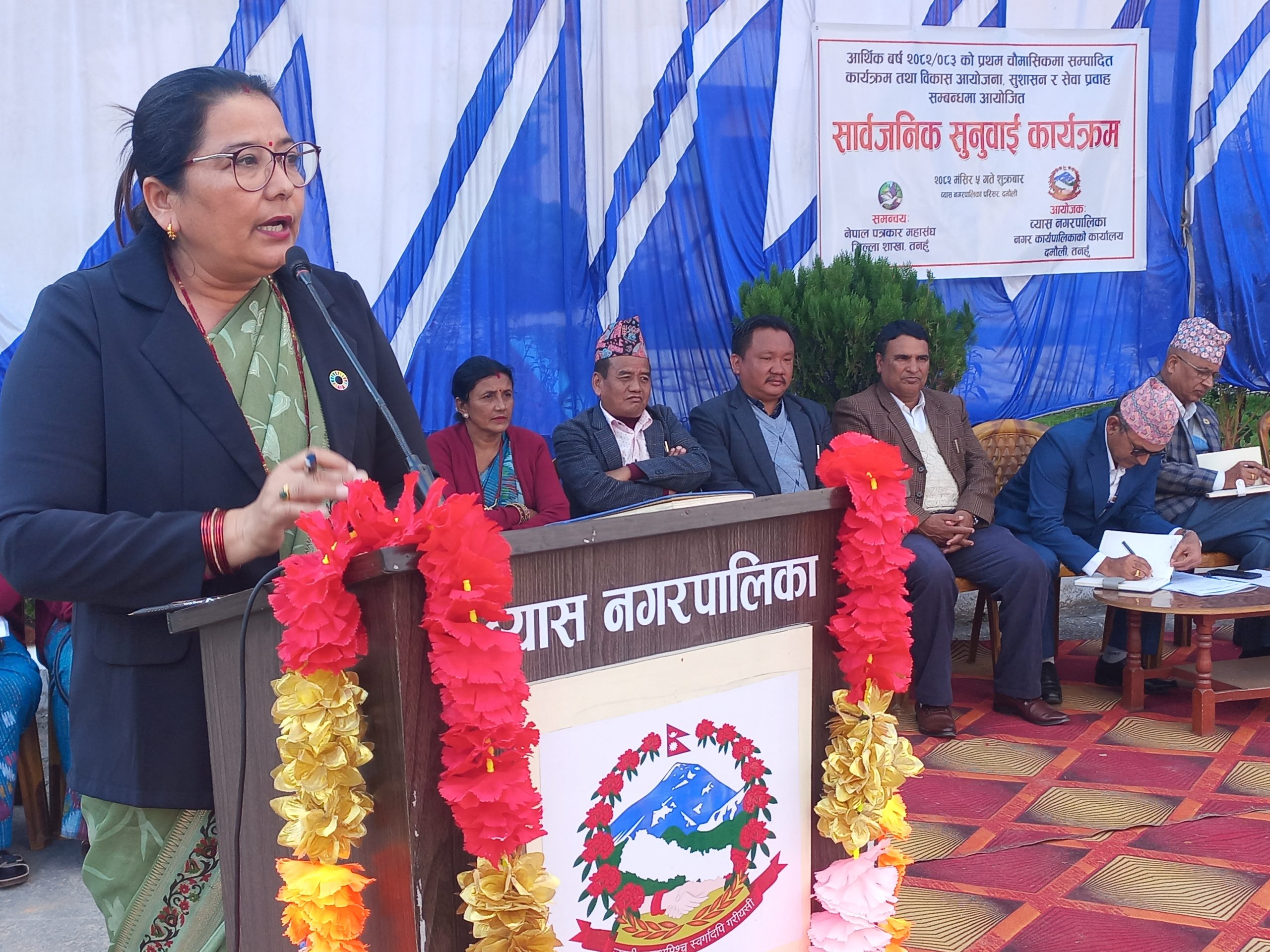 पारदर्शी प्रशासन र समुन्नत पालिका निर्माणका लागि नागरिकको प्रत्यक्ष सहभागिता अपरिहार्य रहेको व्यास नगरपालिकाका प्रमुख वैकुण्ठ न्यौपानेले बताएका छन्। आर्थिक वर्ष २०८२/८३ को प्रथम चौमासिकमा सम्पन्न कार्यक्रम, विकास आयोजना, सुशासन तथा सेवा प्रवाहका विषयमा नेपाल पत्रकार महासंघ तनहुँ शाखाको आयोजनामा शुक्रबार नगरपालिकाको परिसरमा भएको सार्वजनिक सुनुवाइ कार्यक्रममा बोल्दै उनले नीति, नियम र विधिलाई आत्मसात् गर्दै प्रभावकारी सेवा सुनिश्चित गर्न नगरपालिका प्रतिबद्ध रहेको स्पष्ट पारे ।