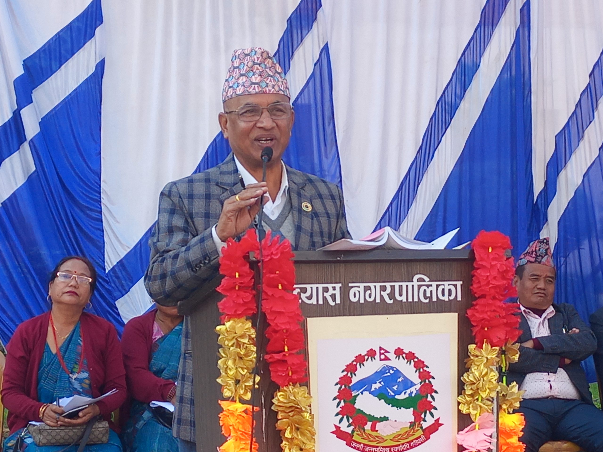 कार्यक्रममा व्यास नगरपालिकाका प्रमुख प्रशासकीय अधिकृत सुकदेव लम्सालले पहिलो चौमासिकको प्रगति सार्वजनिक गर्दै संघीय, प्रदेश र स्थानीय तहबीचको कानुनी जटिलताका कारण कर्मचारी व्यवस्थापनमा चुनौती देखिएको बताए। उनले करार कर्मचारीलाई संघीय मानकअनुसार व्यवस्थित गर्न नगरपालिका अघि बढिरहेको जानकारी दिए ।