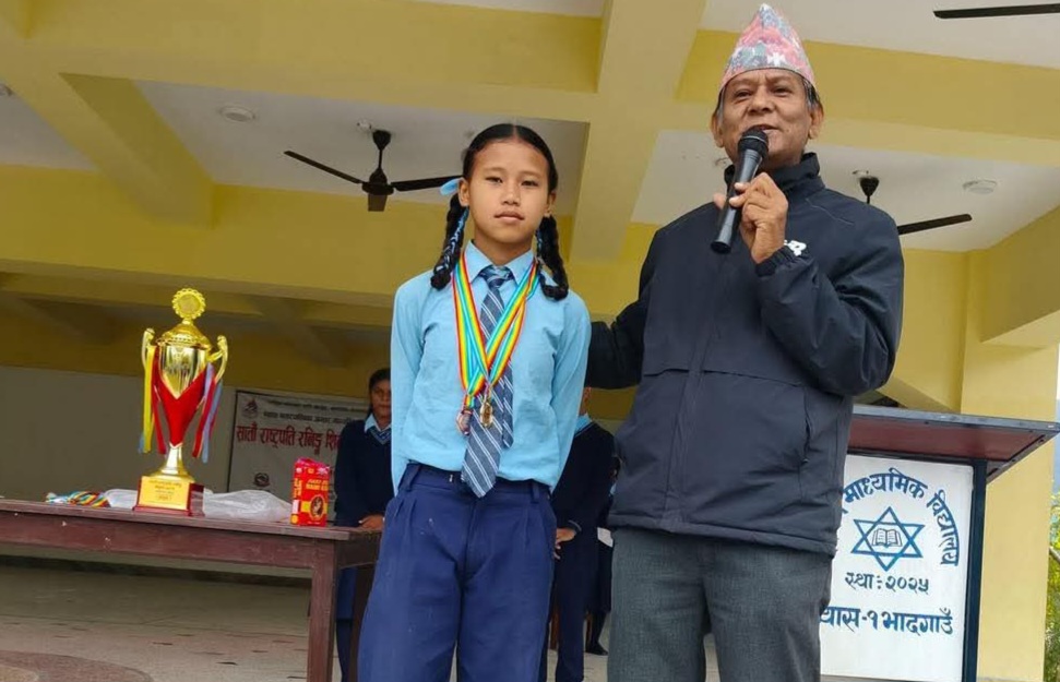 प्रहार समाचार । तनहुँ, ७ मंसिर २०८२ आइतबार । तनहुँको व्यास नगरपालिका वडा नं -१, भादगाउँमा रहेको निर्मल माध्यमिक विद्यालयका प्रधानाध्यापक गणेश चन्द्र बस्नेतले सातौँ व्यास नगरस्तरीय राष्ट्रपति रनिङ शिल्ड प्रतियोगितामा ४०० मिटर दौडमा प्रथम स्थान हासिल गरेकी कक्षा ७ की आश्ना थापाको कक्षा १२ सम्मको सम्पूर्ण शैक्षिक खर्च व्यक्तिगत रूपमा आफूले व्यहोर्ने घोषणा गरेका छन्।