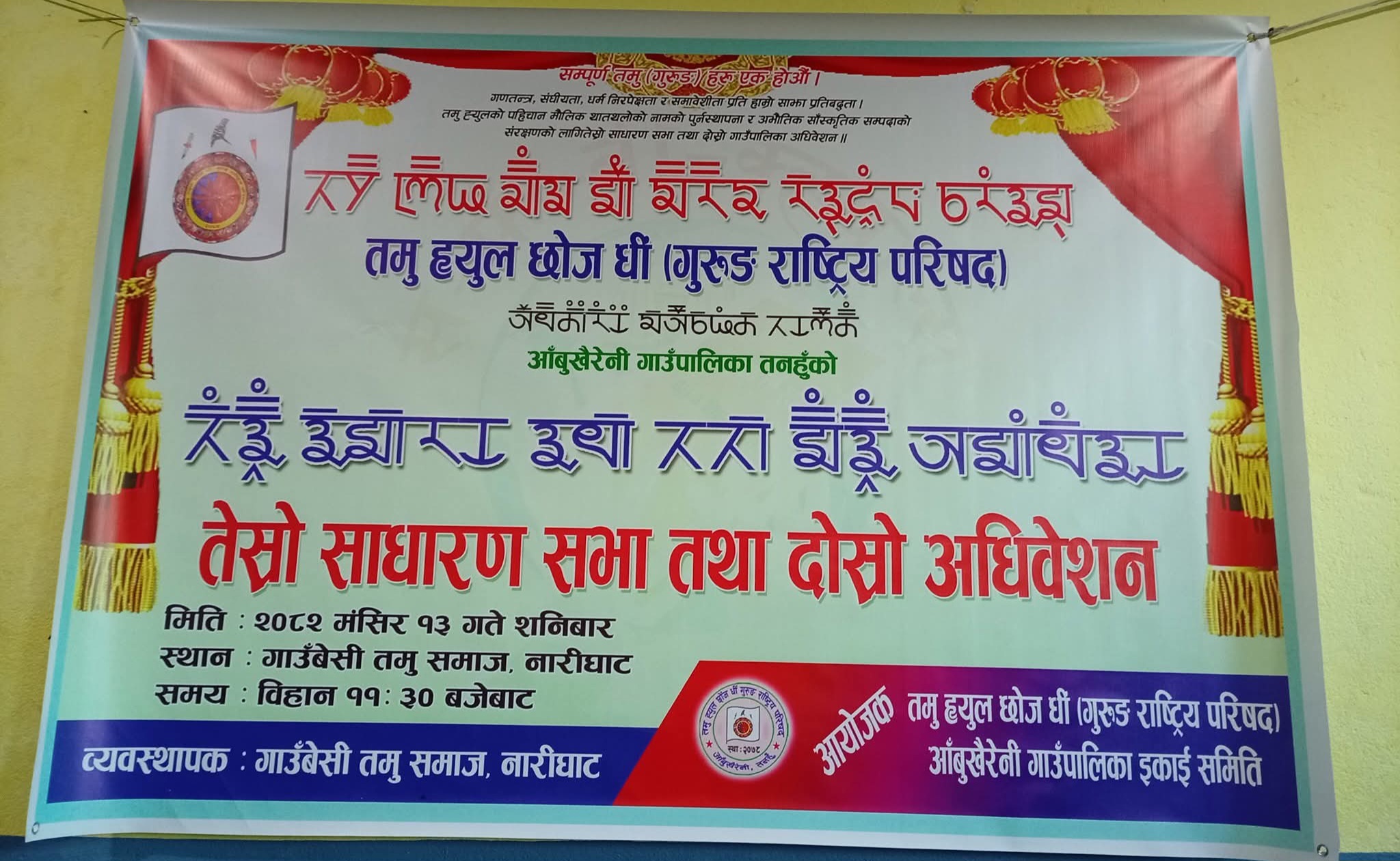 प्रहार समाचार । (पुर्ण बहादुर गुरुङ ) तनहुँ, १५ मंसिर २०८२ सोमबार । तमु ह्युल छोंज धी गुरुङ राष्ट्रिय परिषद आँबुखैरेनी ईकाई समितिको तेस्रो साधारण सभा तथा दोस्रो अधिवेशन हालै आँबुखैरेनीमा सम्पन्न भएको छ।