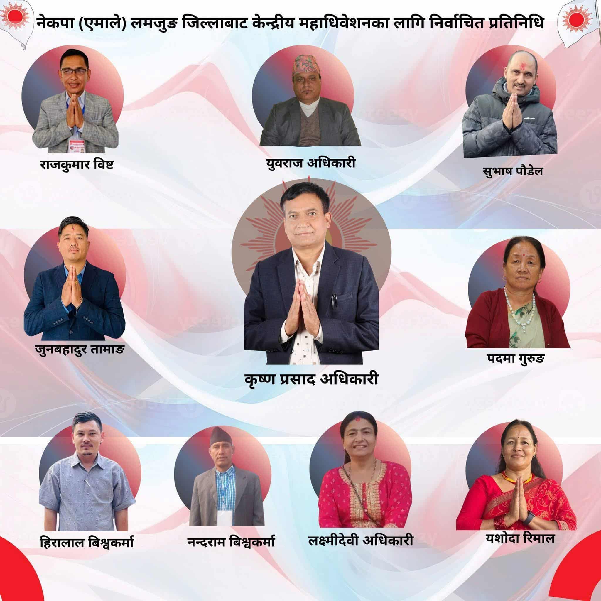 पार्टी स्रोतका अनुसार खुल्लातर्फ सुभाष पौडेल, कृष्णप्रसाद अधिकारी, युवराज अधिकारी र राजकुमार विष्ट महाधिवेशन प्रतिनिधिमा निर्वाचित भएका छन्। त्यसै गरि महिलातर्फ पदमा गुरुङ, यशोदा रिमाल तथा लक्ष्मीदेवी अधिकारीले प्रतिनिधित्व पाएका छन्।