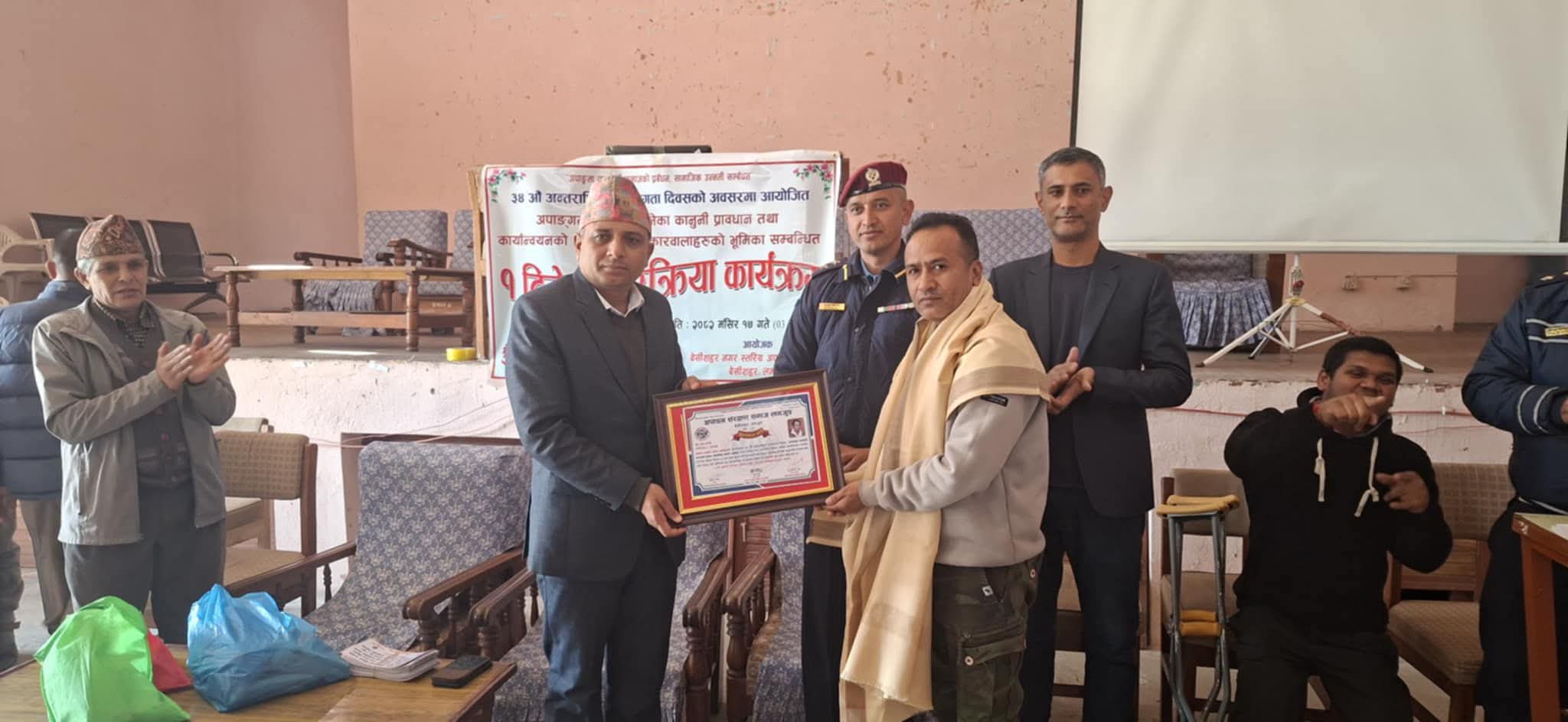 • विजय अधिकारी (संवाददाता) प्रहार समाचार । लमजुङ , १८ मंसिर २०८२ बिहीबार । अपाङ्गता भएका व्यक्तिका हकहित संरक्षण र समावेशी समाज निर्माणका संदेशसहित ३४औं अन्तर्राष्ट्रिय अपाङ्गता दिवस लमजुङमा विविध कार्यक्रमका साथ हिंजो सम्पन्न गरिएको छ। जिल्लालाई समावेशी सेवाको केन्द्रका रूपमा विस्तार गर्ने लक्ष्यसहित आयोजित दिवसमा सरोकारवालाहरूले अधिकार, पहुँच र प्रतिवद्धताका विषयमा जोड दिए।