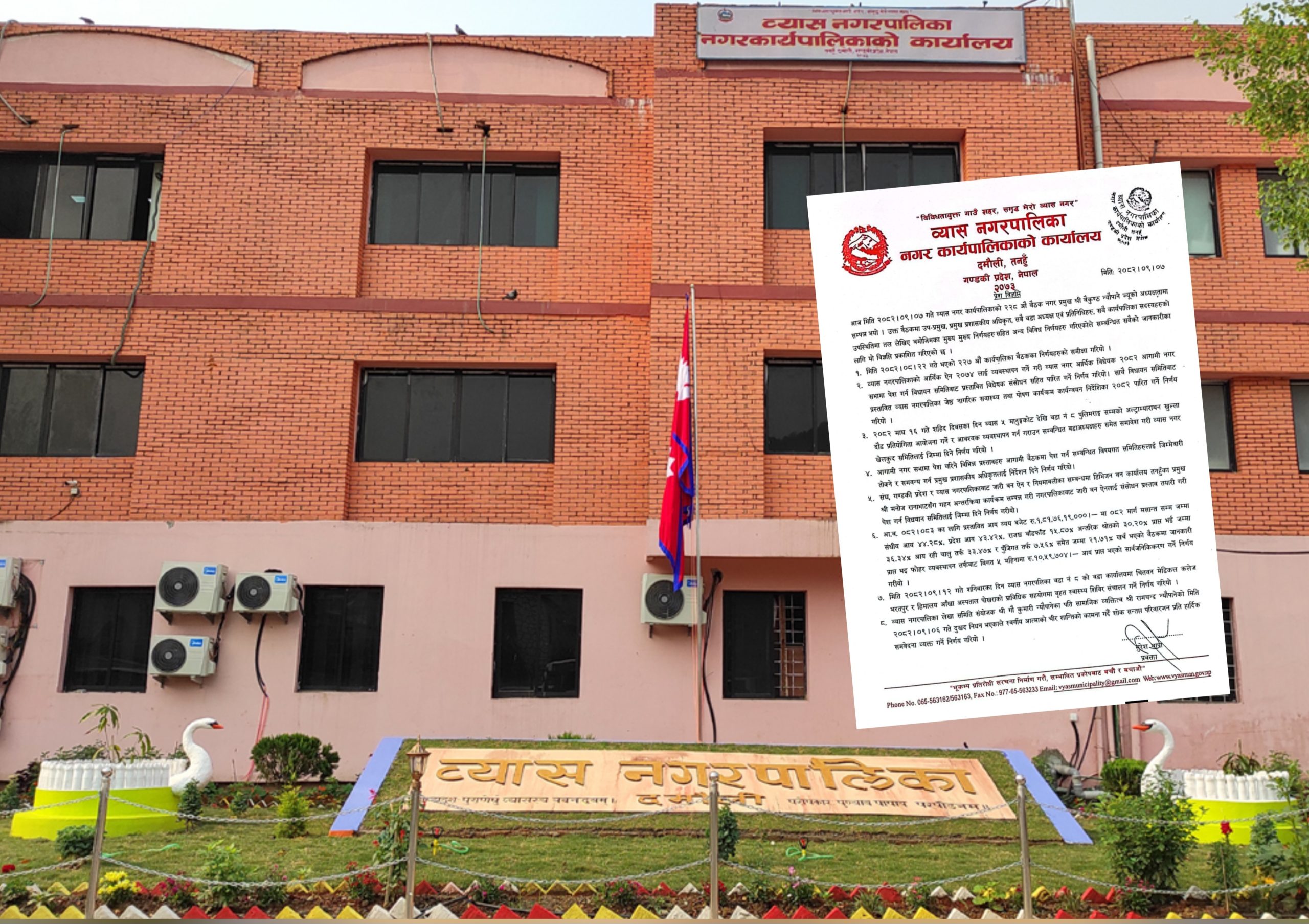 नगर प्रमुख वैकुण्ठ न्यौपानेको अध्यक्षतामा हिजो सम्पन्न नगर कार्यपालिकाको २२८औँ बैठकले नगर विकास, स्वास्थ्य, खेलकुद, आर्थिक पारदर्शिता र सामाजिक उत्तरदायित्वसँग सम्बन्धित बहुआयामिक निर्णयहरू गरेको हो ।