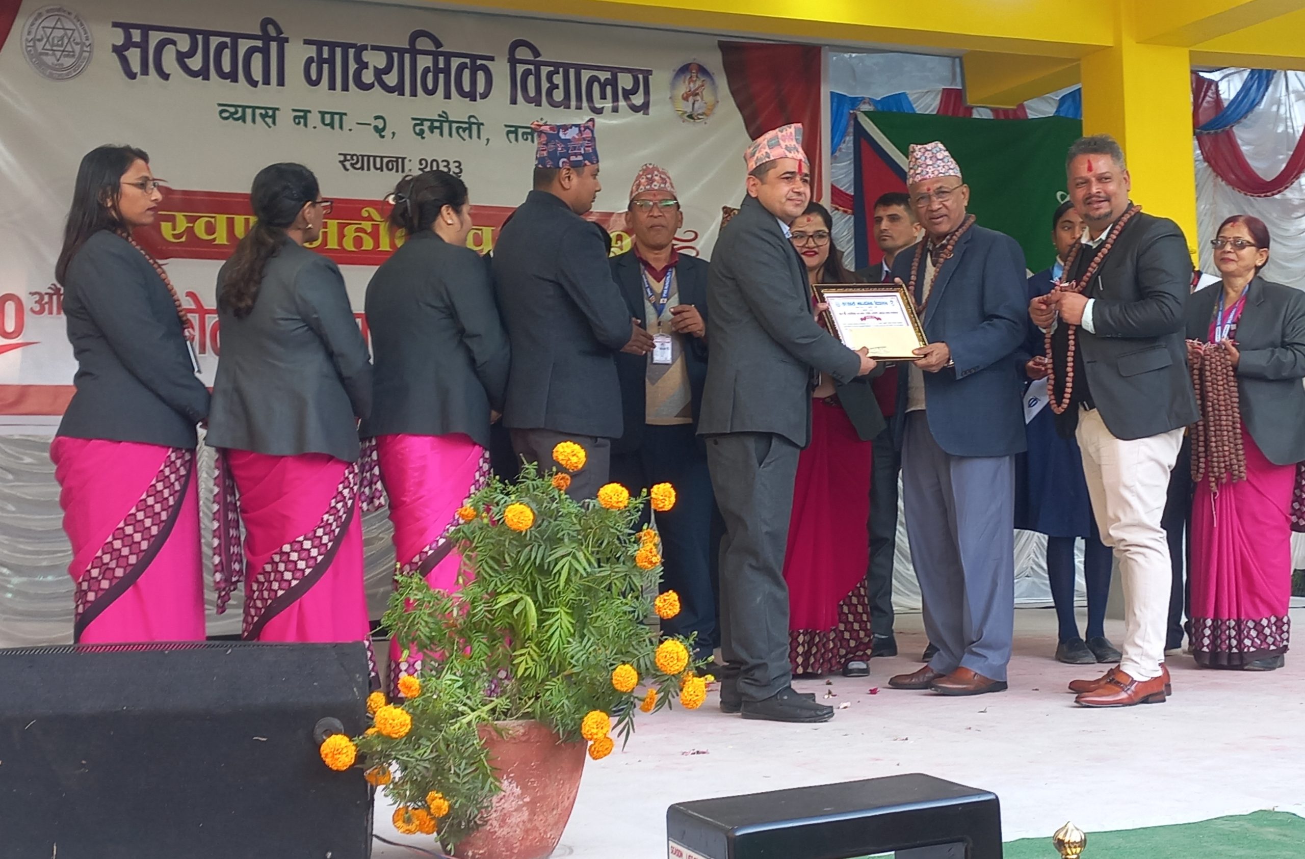 प्रहार समाचार । तनहुँ, ८ पुस २०८१ मंगलबार । तनहुँको व्यास नगर पालिका वडा नम्बर २, दमौलीमा रहेको सत्यवती माध्यमिक विद्यालयका शिक्षकहरुलाई सम्मान गरिएको छ।