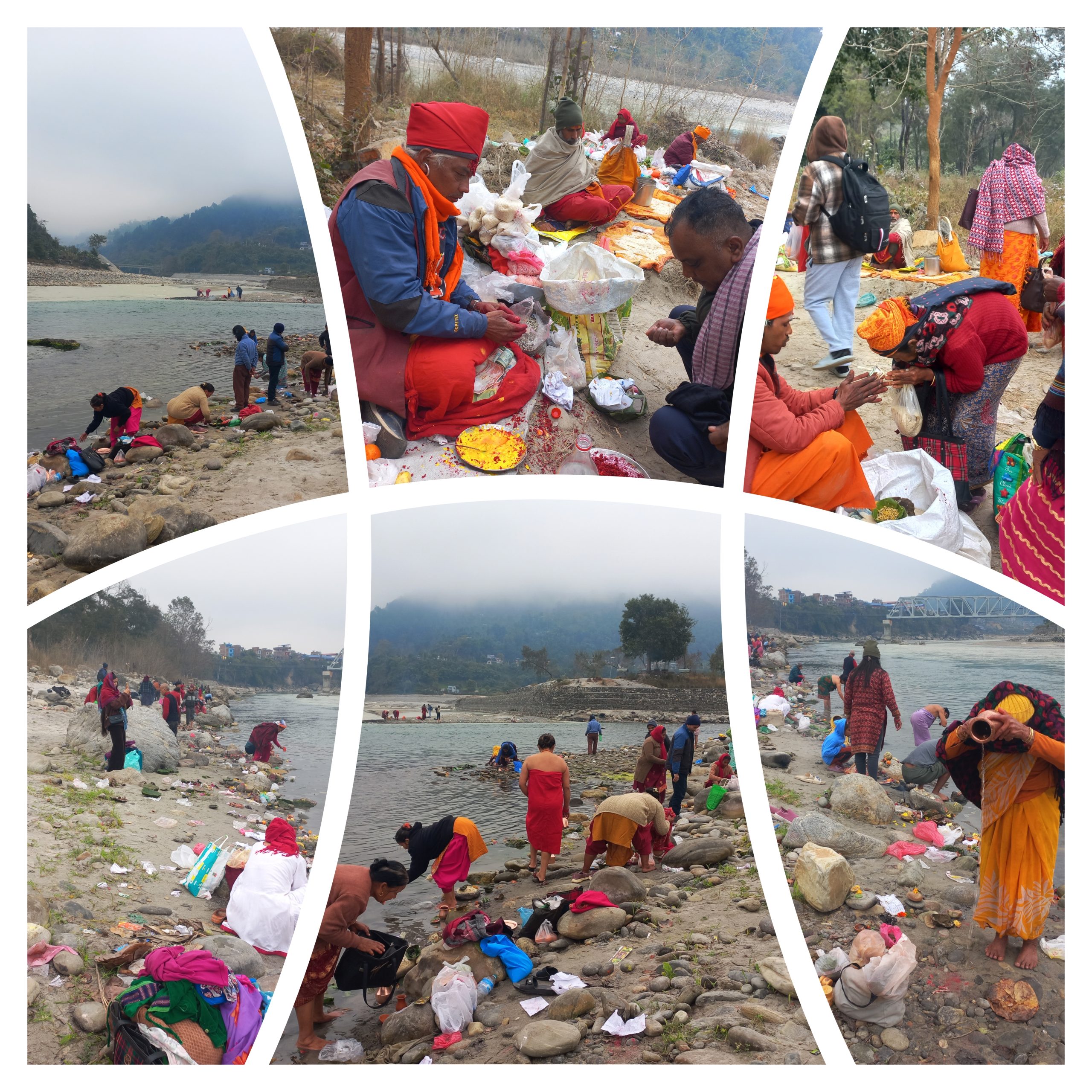 तनहुँको देवघाट, मादी र सेती नदिको संगम स्थल, त्रिशूली, कालीगण्डकी, वाग्मती, इन्द्रावती, त्रिवेणी, रिडी लगायतका धार्मिक स्थलहरूमा माघ स्नान गर्नेहरूको चहलपहल बढेको छ भने कतिपय स्थानमा विशेष मेला पनि आयोजना गरिएको छ। तराई क्षेत्रमा भने माघ १ लाई ‘नहान’ पर्वका रूपमा मनाइन्छ, जहाँ वर्षभर नुहाउन अनुकूल वातावरण नपाए पनि आजको दिन अनिवार्य स्नान गर्नुपर्ने मान्यता छ। तिल दान, घ्यू–चाकु सेवन र तीर्थ स्नानले सुन दान सरह पुण्य मिल्ने धार्मिक विश्वास समाजमा अझै बलियो देखिन्छ।