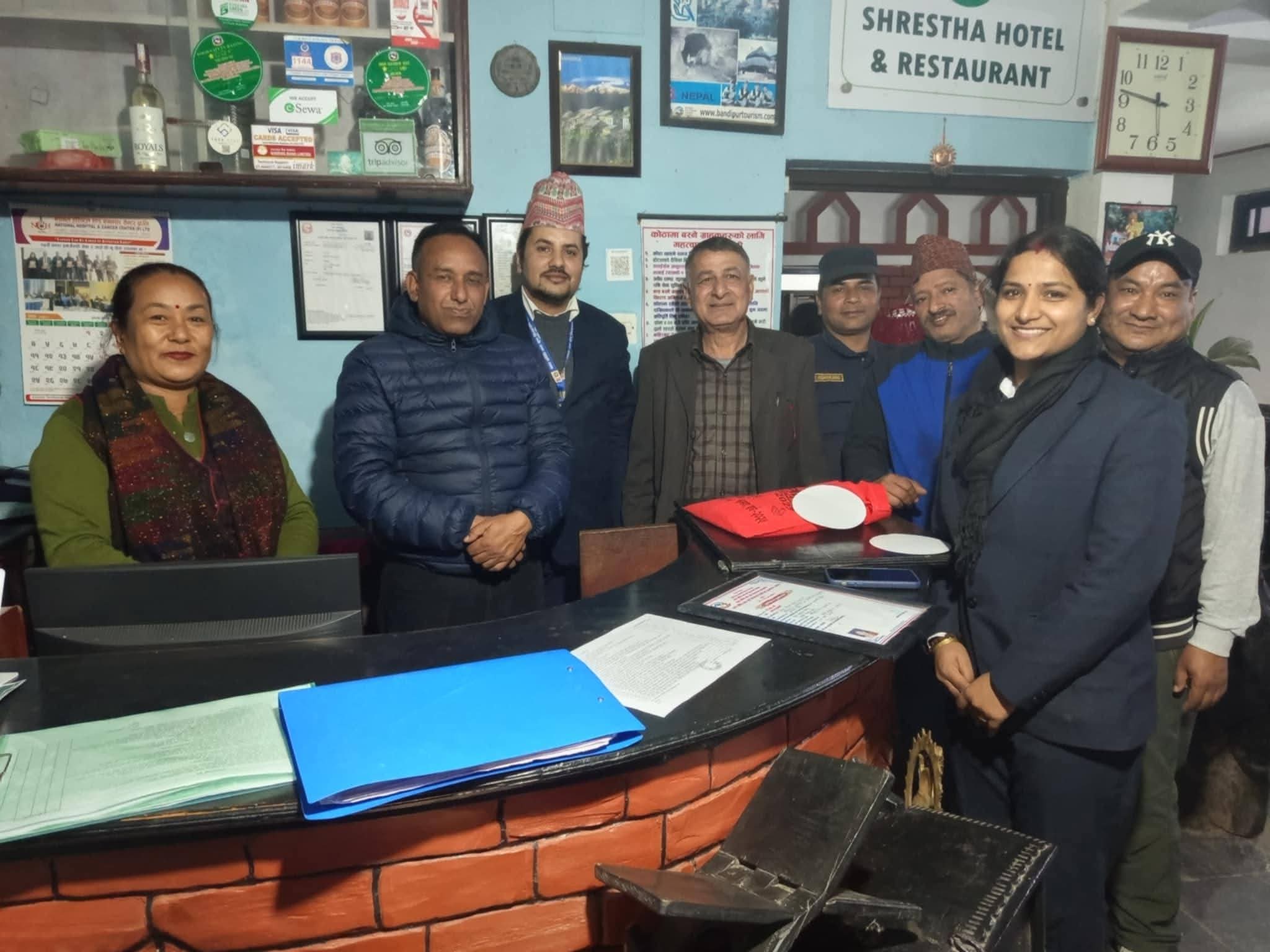 खाद्य प्रविधि तथा गुण नियन्त्रण डिभिजन कार्यालय तनहुँको टोलीले बन्दिपुरका होटल–रेष्टुरेन्टको स्तरीकरण गर्दै मूल्यांकनका आधारमा स्टिकर वितरण गरेको हो।
