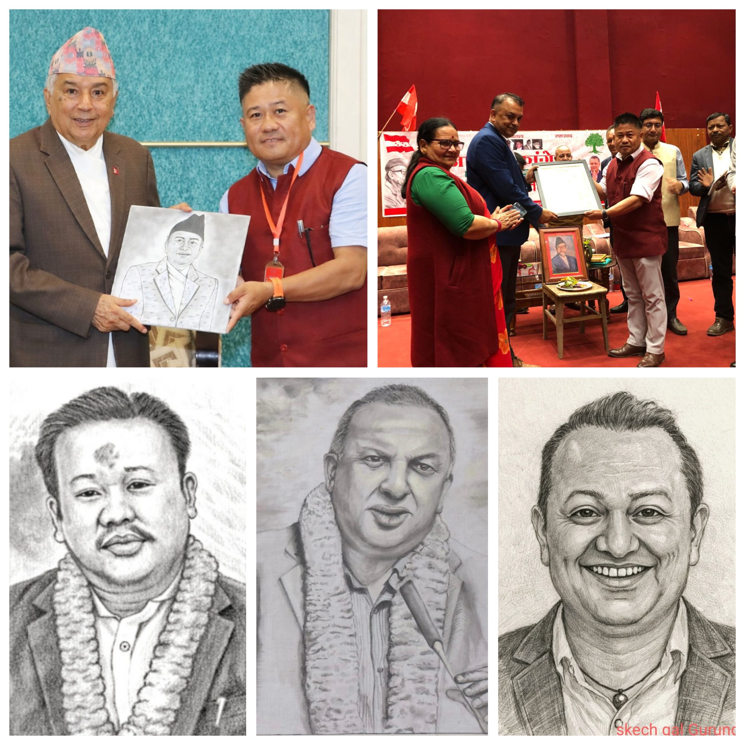 आफ्नै आमाको तस्बिरदेखि राष्ट्रपति रामचन्द्र पौडेल, नेपाली कांग्रेसका नव–निर्वाचित सभापति गगन थापा, व्यास नगरपालिका–६ का वडा अध्यक्ष जीवन गुरुङ (कुमार), नेता शंकर भण्डारीलगायत दर्जनौँ व्यक्तिहरूका तस्बिर उनले दुरुस्तै कोरेका छन्। अधिकांश चित्र उनले सम्मान र आत्मीयताका प्रतीकका रूपमा उपहारस्वरूप दिएका छन् ।
