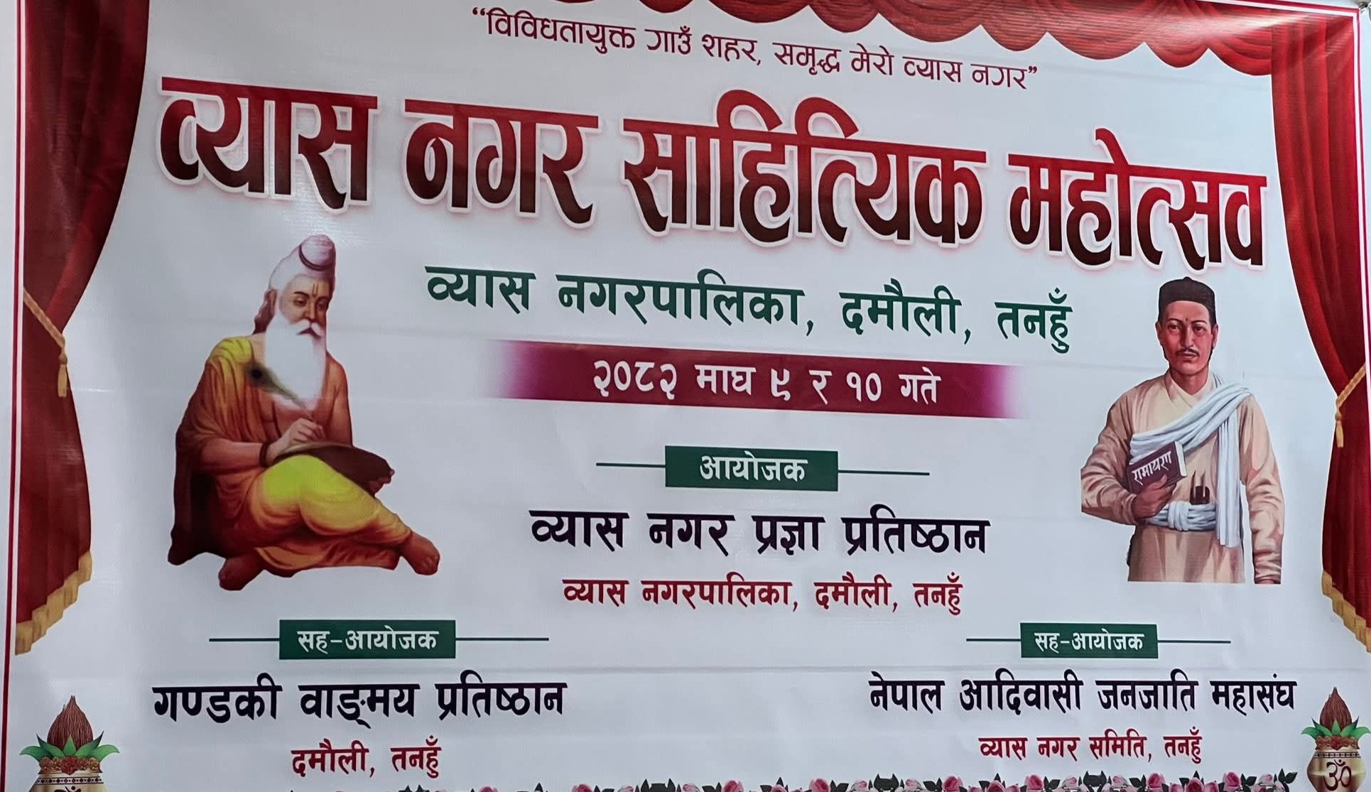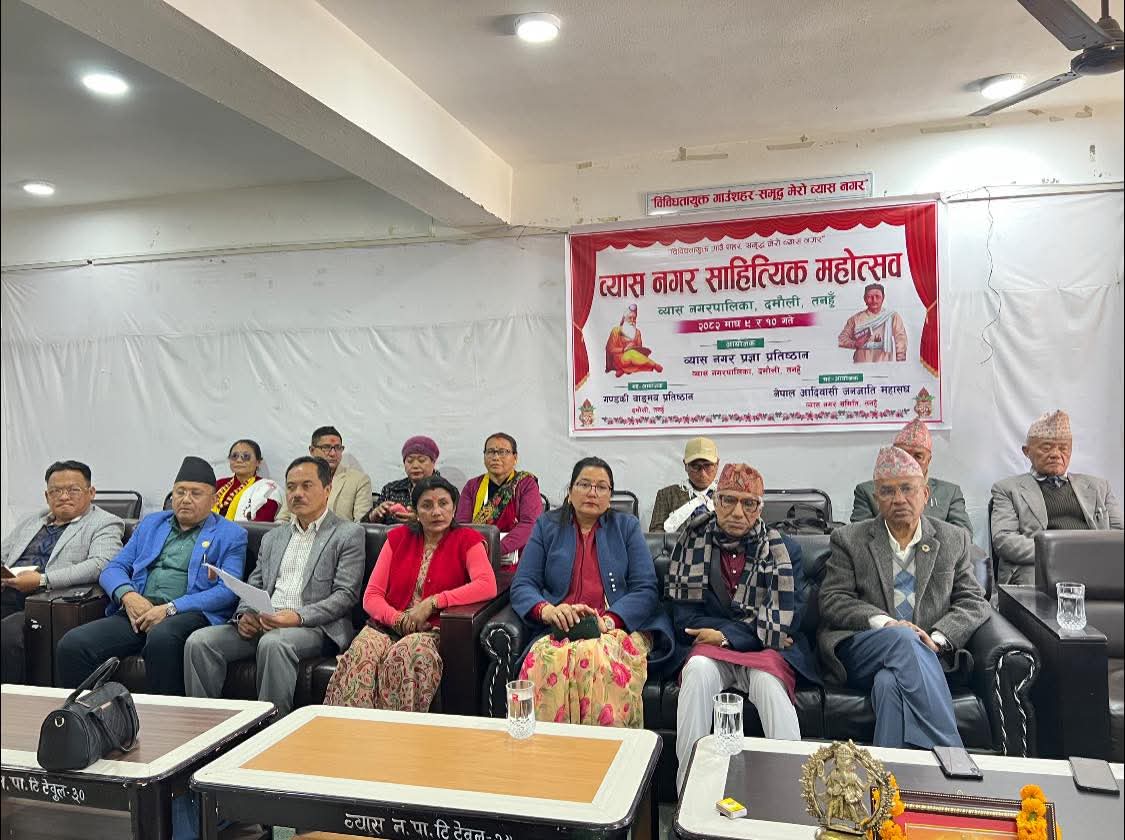 प्रहार समाचार । तनहुँ, ९ माघ २०८२ शुक्रबार । साहित्य, संस्कृति र बहसको साझा थलो बनाउँदै तनहुँको व्यास नगर पालिकामा ‘व्यास नगर साहित्यिक महोत्सव–२०८२’ दमौलीमा सुरु भएको छ। व्यास नगरपालिका र व्यास नगर प्रज्ञा प्रतिष्ठानको आयोजनामा आज र भोलि सम्म सञ्चालन हुने महोत्सवले स्थानीयदेखि राष्ट्रिय स्तरका साहित्यिक आवाजलाई एउटै मञ्चमा जोडेको छ ।