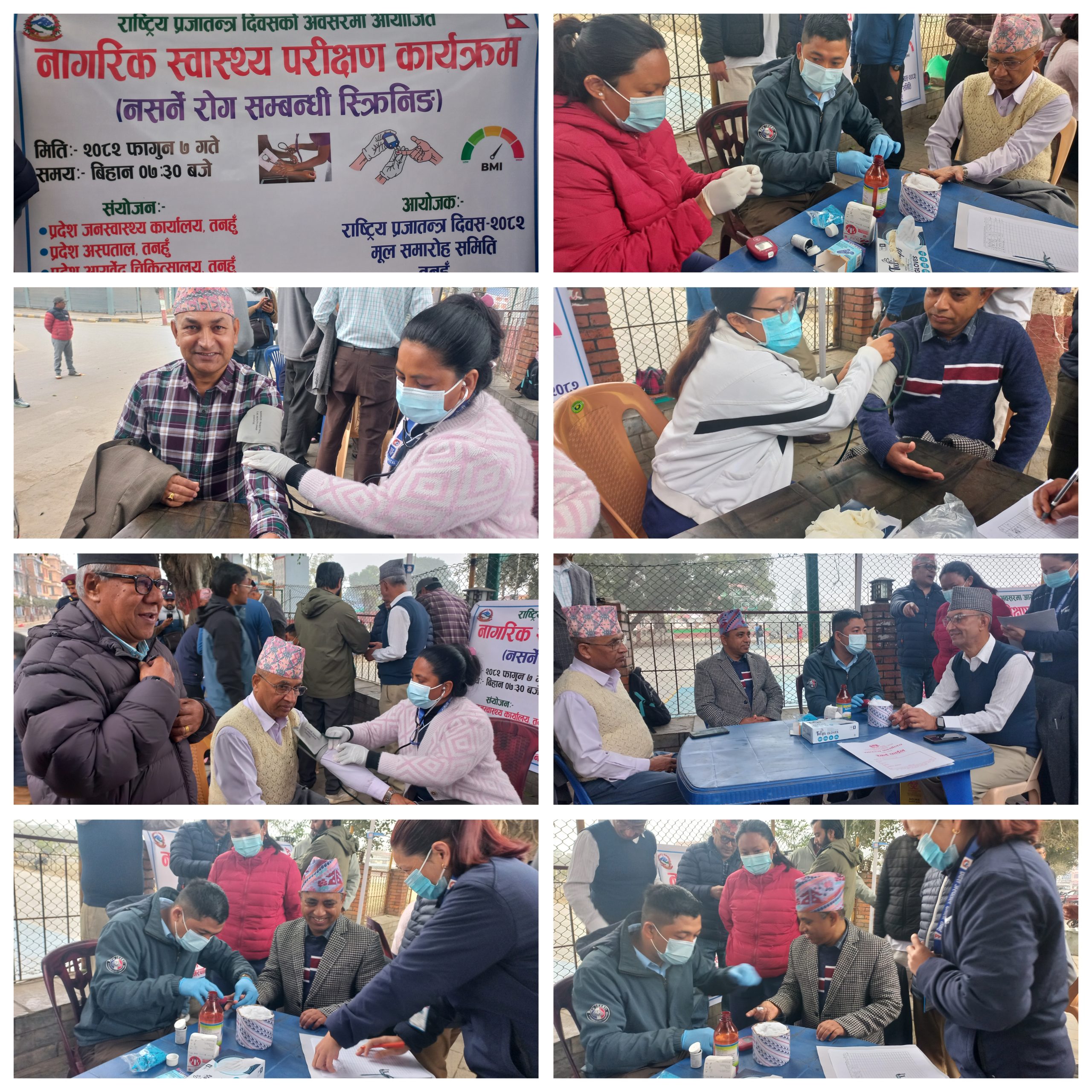 विक्रम संवत् २००७ साल फागुन ७ गते १०४ वर्षसम्म चलेको राणाशासनको अन्त्य भई नेपालमा प्रजातन्त्र स्थापना भएको घोषणा गरिएको दिनको सम्झनामा यो दिवस मनाउन थालिएको हो । नेपालको राजनीतिक इतिहासमा २००७ सालको परिवर्तनलाई लोकतन्त्र प्राप्तिका लागि भएको पहिलो संगठित, सशक्त र सशस्त्र आन्दोलनका रूपमा लिने गरिन्छ । आजको दिनलाई जनताको अधिकार, स्वतन्त्रता र अग्रगामी राजनीतिक परिवर्तनका लागि एकताबद्ध हुन प्रेरणा दिने ऐतिहासिक दिनका रूपमा स्मरण गरिन्छ । यसैबि राष्ट्रिय प्रजातन्त्र दिवस फागुन ७ को अवसरमा आज तनहुँको सदरमुकाम दमौलीमा आयोजित नागरिक स्वास्थ्य परीक्षण कार्यक्रम (नसर्ने रोग सम्बन्धी स्क्रिनिङ) कार्यक्रम सम्पन्न भएको छ। । उक्त कार्यक्रम राष्ट्रिय प्रजातन्त्र दिवस-२०८२ मूल समारोह समिति तनहुँको आयोजना र प्रदेश जनस्वास्थ्य कार्यालय, प्रदेश अस्पताल, प्रदेश आयुर्वेद चिकित्सालय र व्यास नगरपालिका कार्यालय, तनहुँको समन्वयमा संयुक्त रूपमा भएको थियो ।