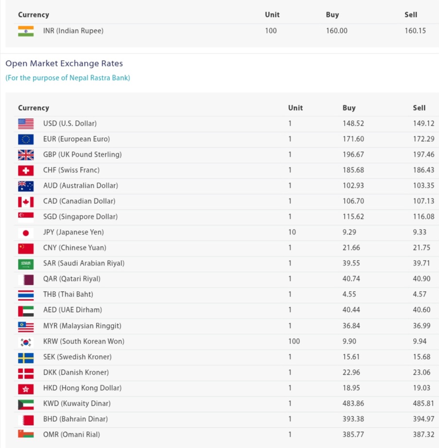 प्रहार समाचार । काठमाडौँ, २५ चैत २०८२ बुधबार । नेपाल राष्ट्र बैंकले आजको लागि विदेशी मुद्राको विनिमय दर निर्धारण गरेको छ। जस अनुसार विनिमय दर यसप्रकार रहेको छ।