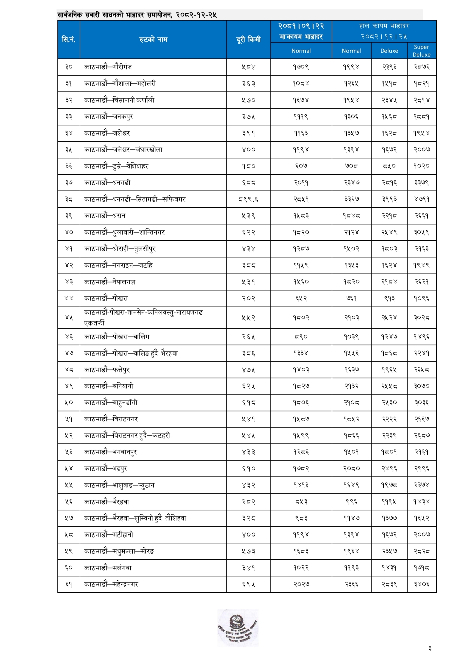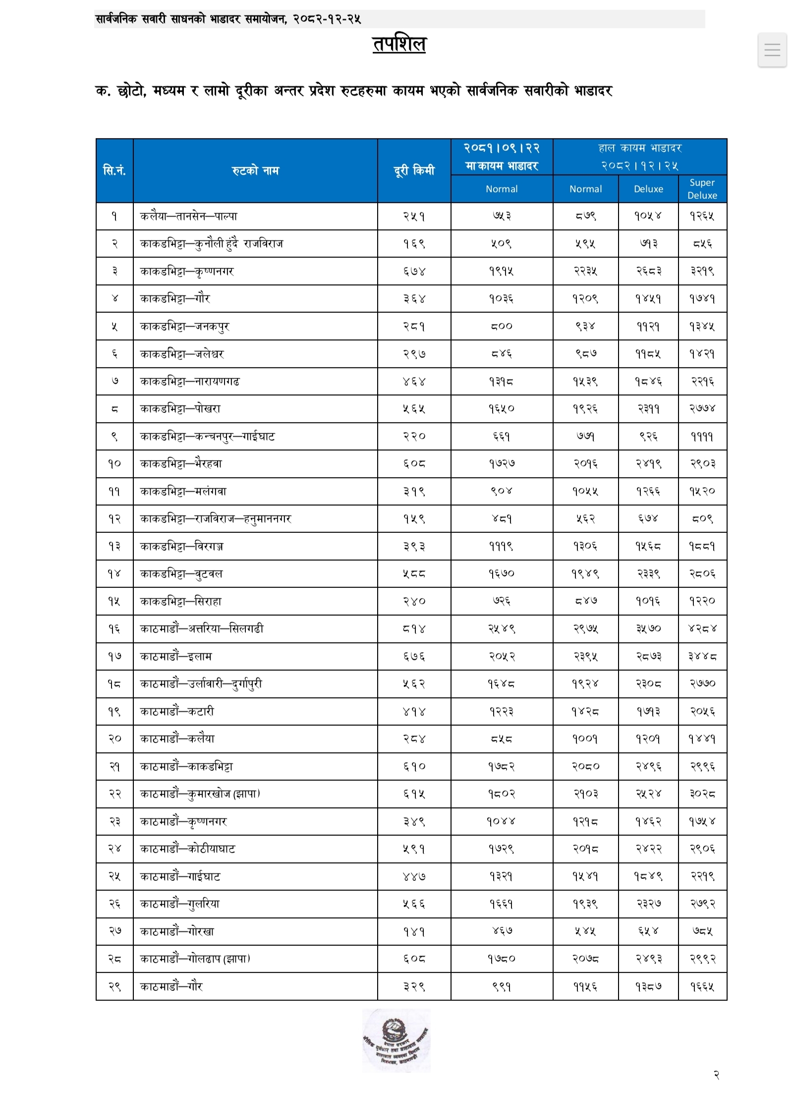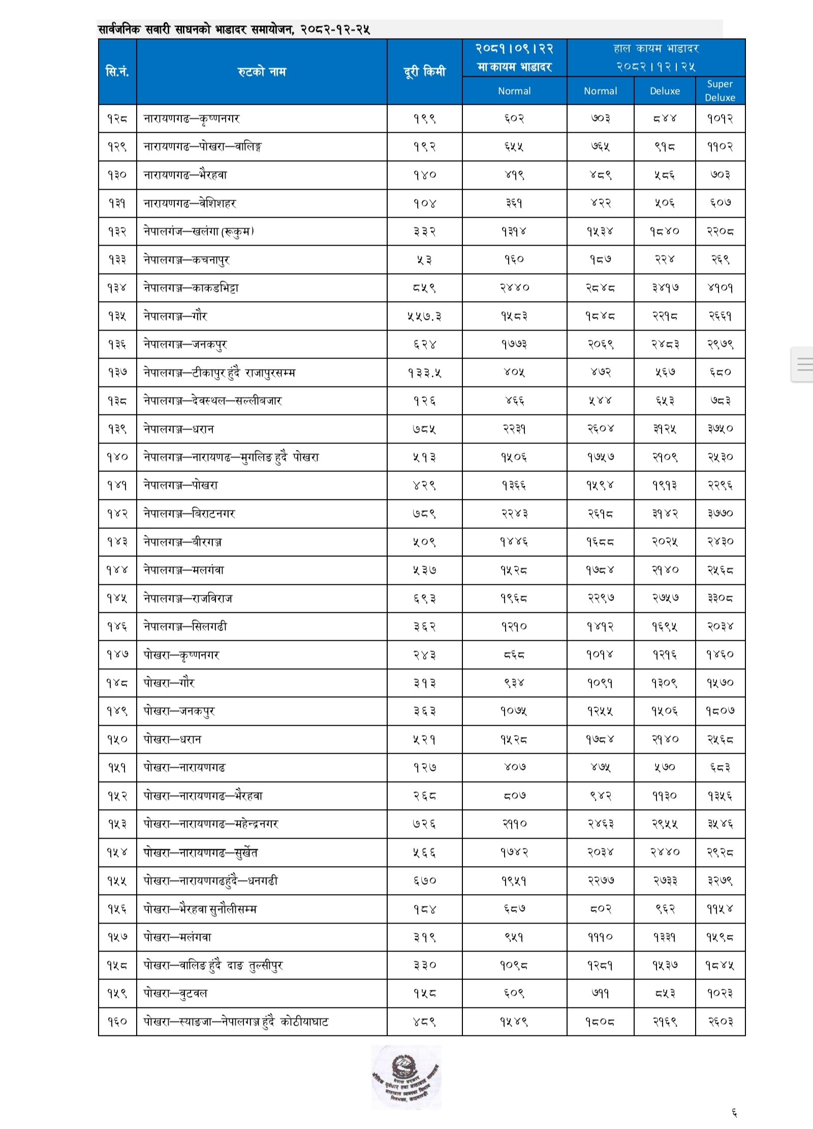 प्रहार समाचार । काठमाडौं, २५ चैत्र २०८२ बुधवार । क । नेपाल सरकारले लामो दूरीका सार्वजनिक यातायातका लागि नयाँ भाडादर सार्वजनिक गरेको छ।