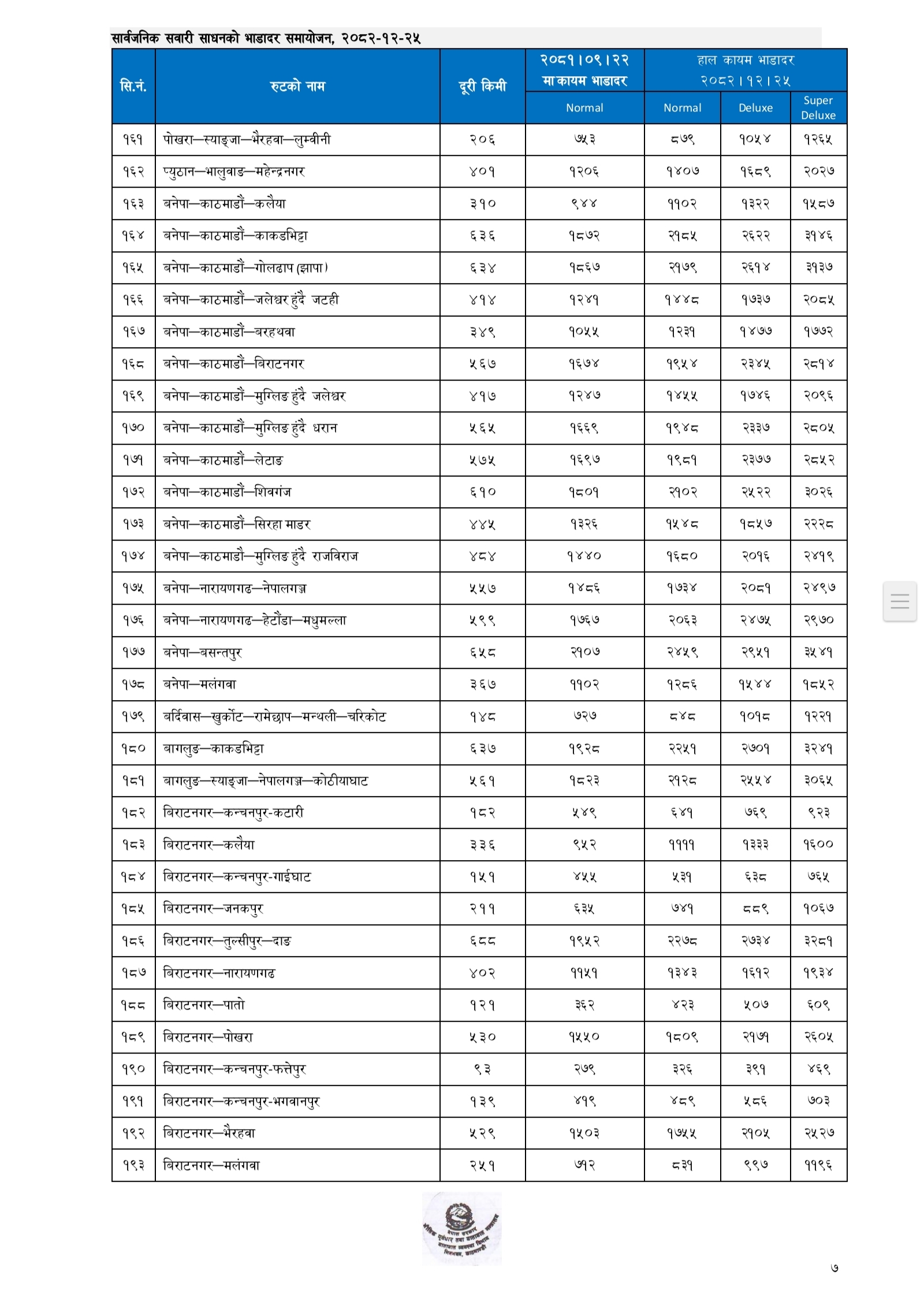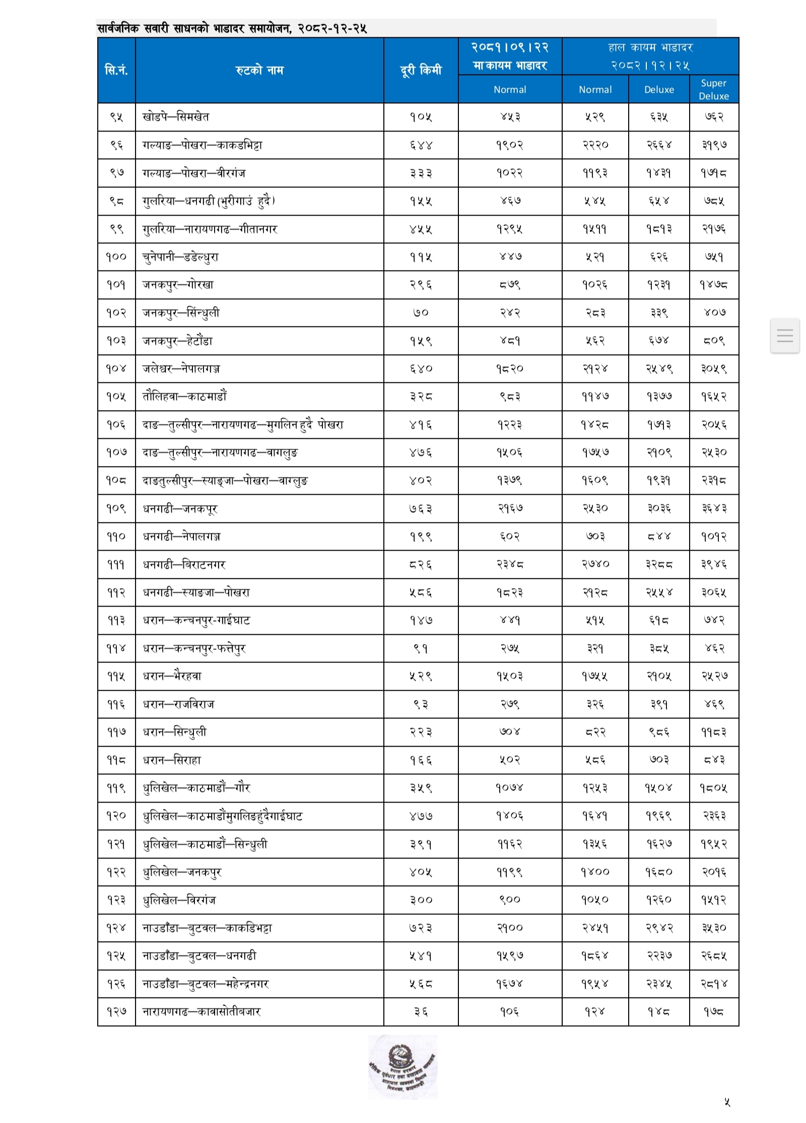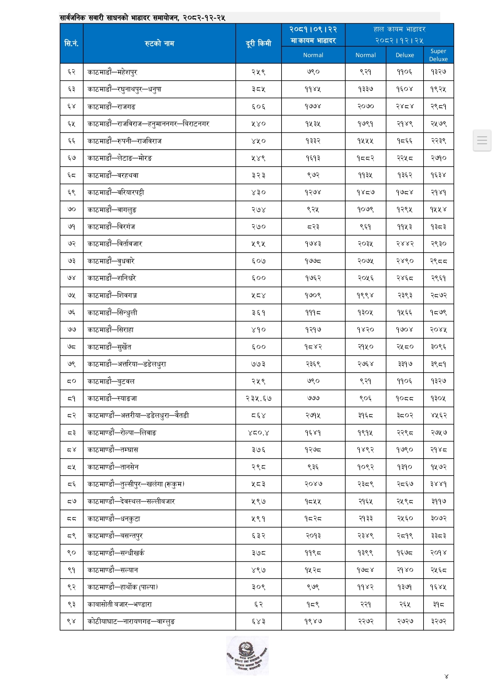 प्रहार समाचार । काठमाडौं, २५ चैत्र २०८२ बुधवार । क । नेपाल सरकारले लामो दूरीका सार्वजनिक यातायातका लागि नयाँ भाडादर सार्वजनिक गरेको छ।