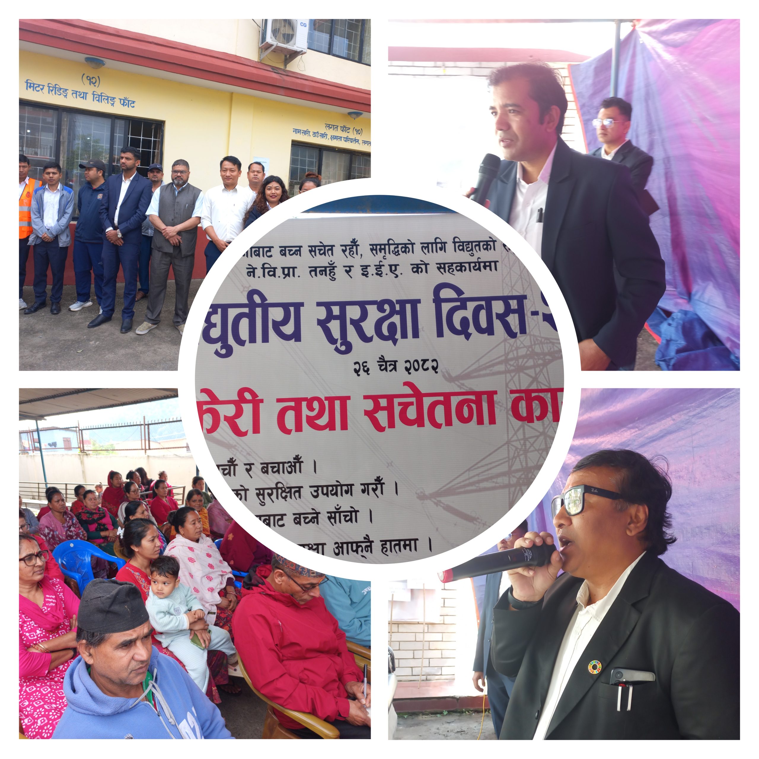 नेपाल विद्युत प्राधिकरण तनहुँ वितरण केन्द्रका प्रमुख पवन पौडेलले विद्युतको सुरक्षित प्रयोग नै दुर्घटना न्यूनीकरणको मुख्य उपाय भएको बताए। उनले विद्युतिय सुरक्षा र अपनाउनुपर्ने सावधानीसम्बन्धी कार्यपत्र प्रस्तुत गर्दै घरायसी तथा सार्वजनिक प्रयोगमा हुने लापरबाही नै अधिकांश दुर्घटनाको कारण बन्ने उल्लेख गरे। “विद्युत दुर्घटना संयोग होइन, सुरक्षा प्रतिको बेवास्ता हो,” भन्ने सन्देशलाई व्यवहारमा उतार्नुपर्नेमा उनले जोड दिए।