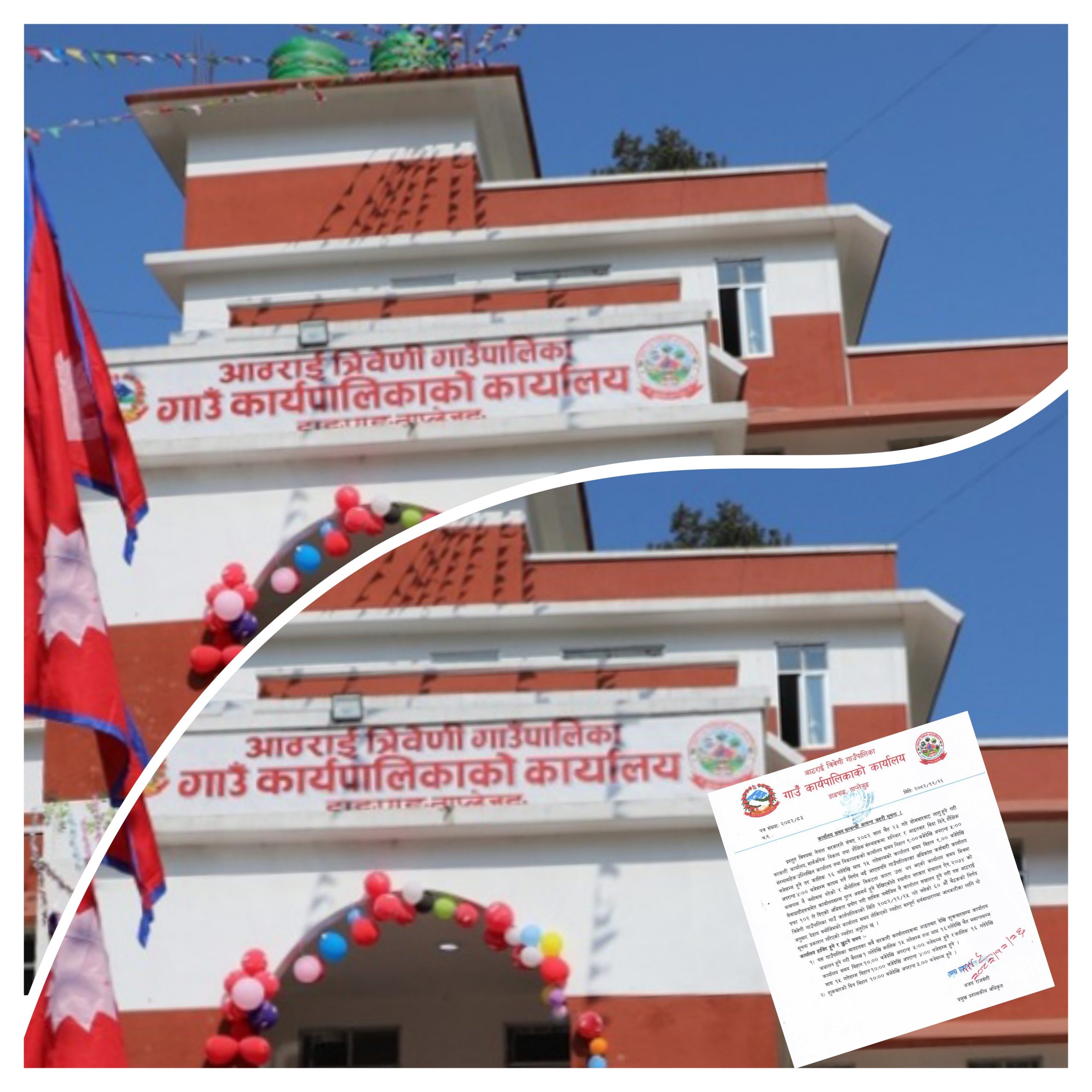 • विजय अधिकारी ( संवाददाता ) प्रहार समाचार । ताप्लेजुङ, २७ चैत २०८२ शुक्रबार । ताप्लेजुङ — ताप्लेजुङको आठराई त्रिवेणी गाउँपालिकाले आइतबार बिदा नदिने निर्णय गरेको छ। नेपाल सरकारले चैत २३ गते सोमबारदेखि लागू हुने गरी सरकारी कार्यालय तथा शैक्षिक संस्थामा शनिबार र आइतबार बिदा दिने व्यवस्था गरे पनि गाउँपालिकाले पुरानै प्रणाली कायम राख्ने निर्णय गरेको हो।