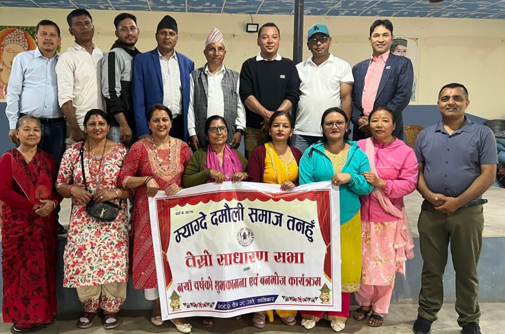 प्रहार समाचार । तनहुँ, २९ चैत २०८२ आईतबार ।म्याग्दे–दमौली समाजको तेस्रो साधारणसभा तथा नयाँ वर्ष २०८३ को शुभकामना आदान–प्रदान कार्यक्रम शनिबार म्याग्दे गाउँपालिका–४ स्थित घुम्ती टोल विकास संस्थाको भवनमा सम्पन्न भएको छ। कार्यक्रमसँगै बनभोजको समेत आयोजना गरिएको