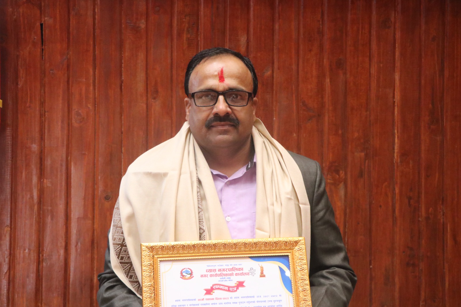 प्रहार समाचार । तनहुँ, ३० चैत २०८२ सोमबार । तनहुँको दमौलीस्थित व्यास नगरपालिकाले आफ्नो ३४औं स्थापना दिवस २०८२ को अवसरमा पत्रकारिता क्षेत्रमार्फत समाजमा सूचना प्रवाहमा महत्वपूर्ण भूमिका खेलेका आज पत्रकार शंकरराज नहर्कीलाई नगदसहित सम्मान गरेको छ।