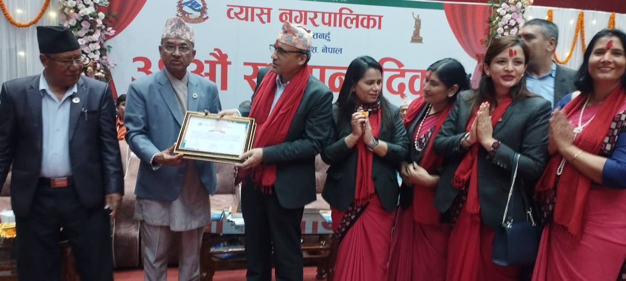 व्यास नगरपालिका नगर कार्यपालिकाको कार्यालयद्वारा आयोजित कार्यक्रममा नगर प्रमुख बैकुण्ठ न्यौपाने, उपप्रमुख इन्दिरा दरै, प्रमुख प्रशासकीय अधिकृत सुकदेव लम्साल र नगर शिक्षा अधिकारी केदारराज आचार्य लगायतले संयुक्त रूपमा सम्मान तथा पुरस्कार वितरण गरेका थिए।