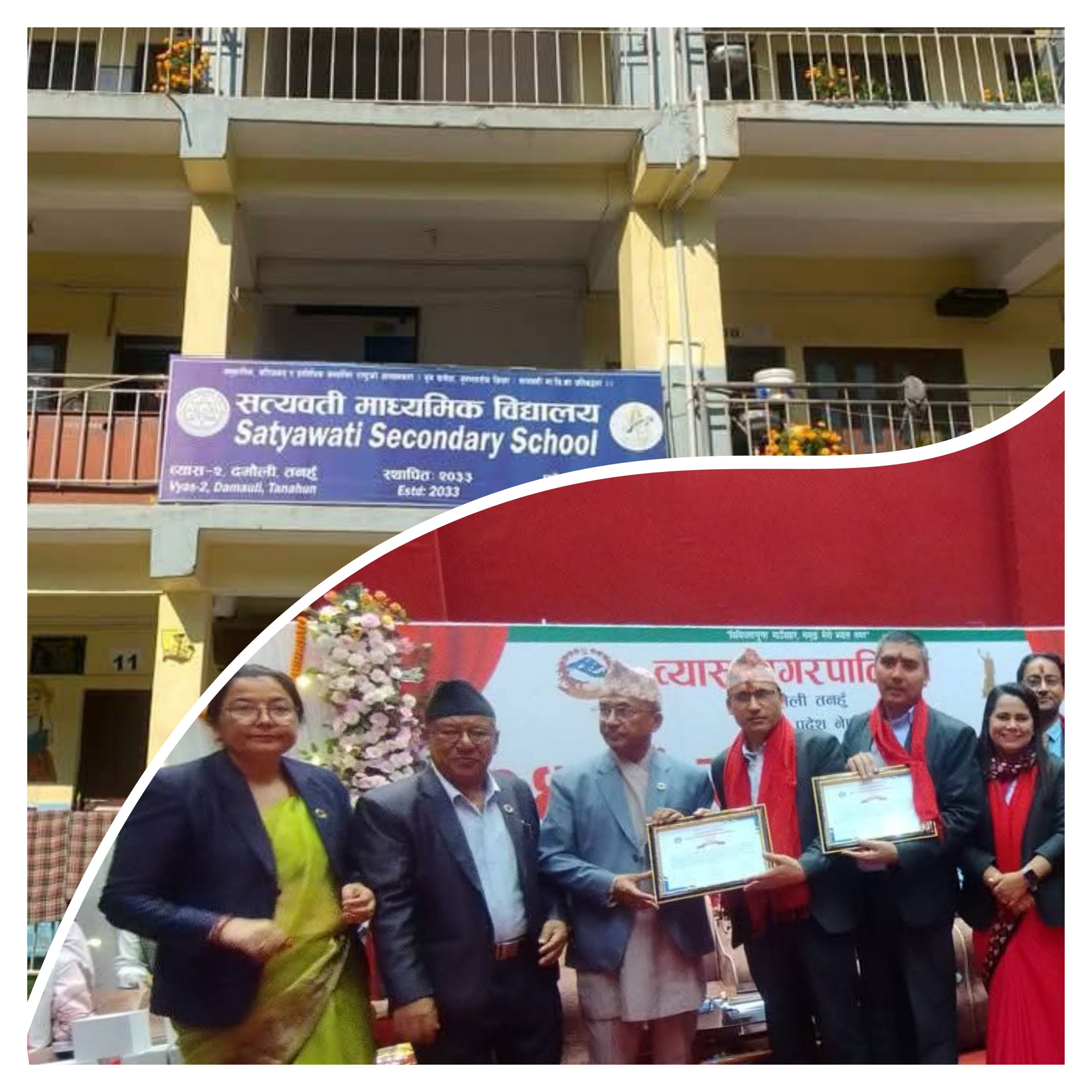 प्रहार समाचार । तनहुँ, १ बैशाख २०८३ मंगलबार । तनहुँको व्यास नगरपालिका -२, दमौलीस्थित सत्यवती माध्यमिक विद्यालयका प्रधानाध्यापक इन्द्रप्रसाद उपाध्याय पौडेल, शिक्षकहरु तथा उत्कृष्ट नतिजा ल्याउने विद्यार्थीहरूलाई व्यास नगरपालिकाले सम्मान गरेको छ।