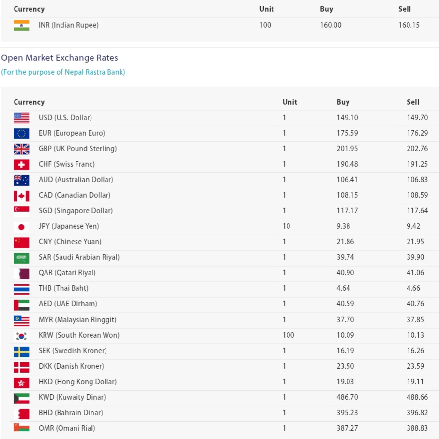 प्रहार समाचार । काठमाडौँ, ३ बैशाख २०८३ बिहीबार। नेपाल राष्ट्र बैंकले आजको लागि विदेशी मुद्राको विनिमय दर निर्धारण गरेको छ। जस अनुसार विनिमय दर यसप्रकार रहेको छ।