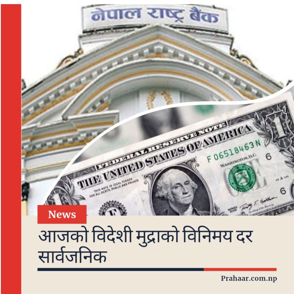प्रहार समाचार । काठमाडौँ, ७ वैशाख २०८३ सोमबार । नेपाल राष्ट्र बैंकले आजका लागि विदेशी मुद्राको विनिमय दर सार्वजनिक गरेको छ। बैंकले खुला बजार विनिमय दरअनुसार विभिन्न मुलुकका मुद्राको खरिद र बिक्री दर निर्धारण गरेको जनाएको छ।