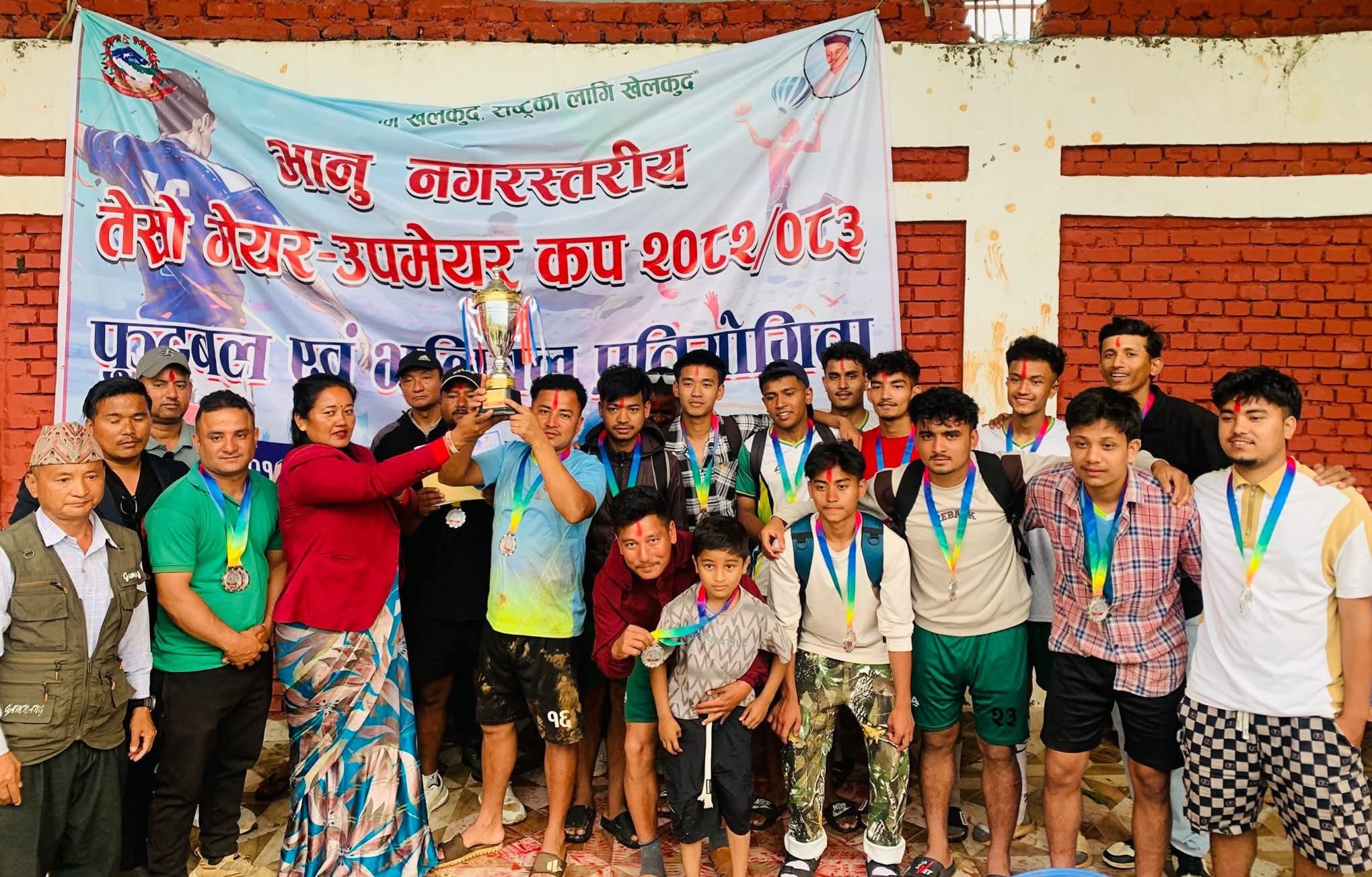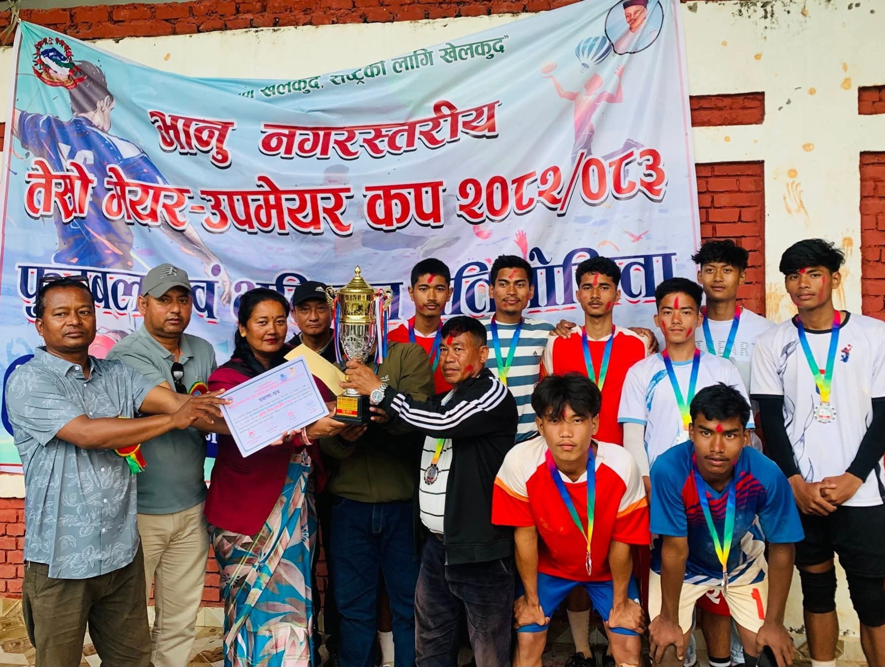 प्रहार समाचार । तनहुँ, ८ बैशाख २०८३ मंगलबार । तनहुँको भानु नगरपालिका स्तरिय तेस्रो मेयर/उपमेयर कप २०८२/८३ अन्तर्गत फुटबल र भलिबल प्रतियोगिता सम्पन्न भएको छ । फुटबल तर्फ वडा नम्बर ३ ले उत्कृष्ट प्रदर्शन गर्दै उपाधि उचालेको छ भने भलिबलतर्फ वडा नम्बर –७ ले आफ्नो प्रभुत्व कायम राख्दै च्याम्पियन बन्न सफल भएको छ।