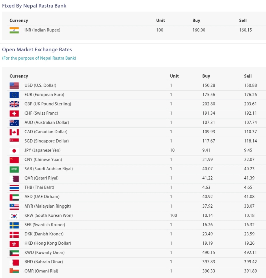 नेपाल राष्ट्र बैंकले दैनिक रूपमा विदेशी विनिमय दर सार्वजनिक गर्ने गर्दछ, जस ।ले आयात–निर्यात व्यवसाय, विदेशी लगानी, र अन्तर्राष्ट्रिय कारोबारमा संलग्न व्यवसायीहरूलाई मार्गदर्शन गर्ने कार्य गर्दछ। विनिमय दरमा आउने उतार–चढावले आर्थिक कारोबारमा प्रत्यक्ष असर पार्ने भएकाले बैंकले नियमित रूपमै सो दरको जानकारी गराउने गर्दछ ।
