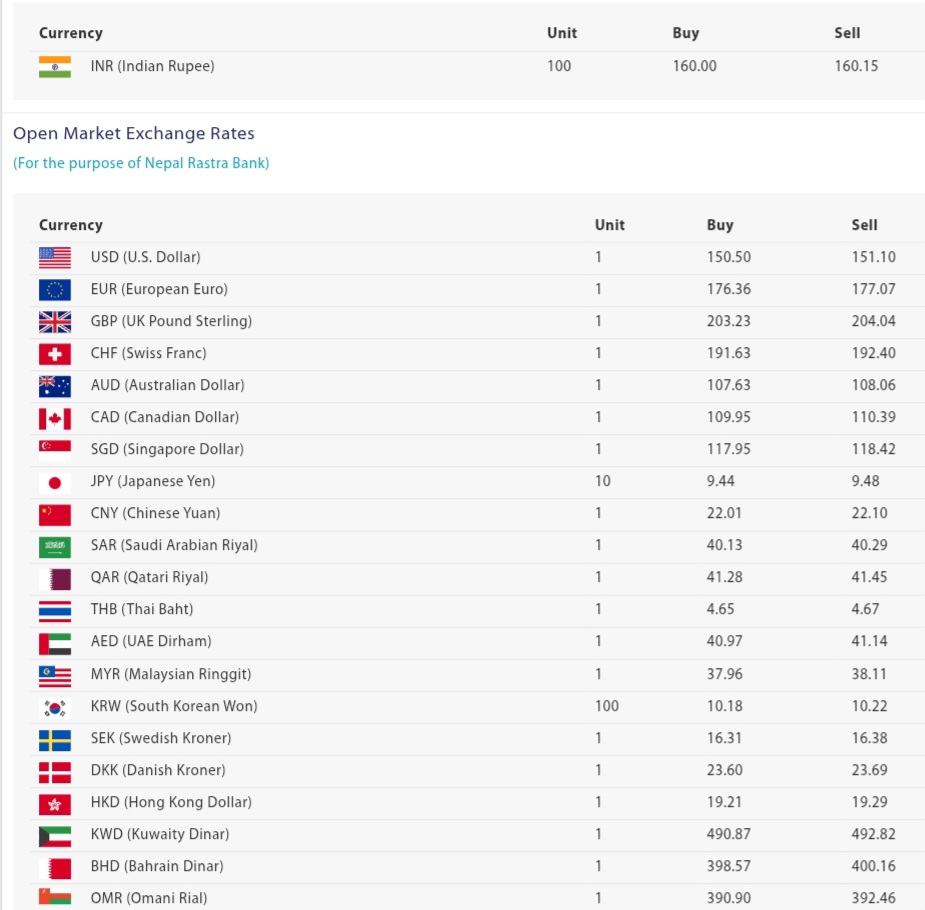 प्रहार समाचार । काठमाडौँ, १३ बैशाख २०८३ आइबार । नेपाल राष्ट्र बैंकले आजको लागि विदेशी मुद्राको विनिमय दर निर्धारण गरेको छ। जस अनुसार विनिमय दर यसप्रकार रहेको छ।